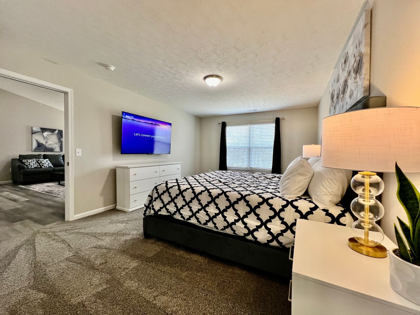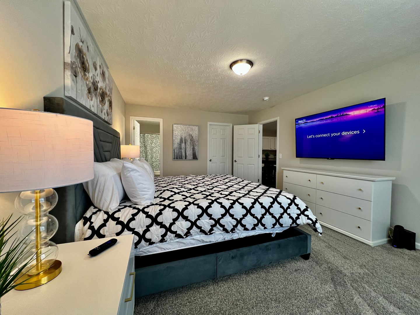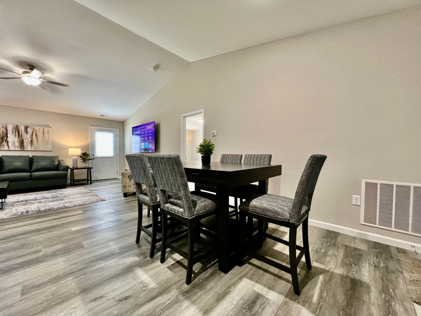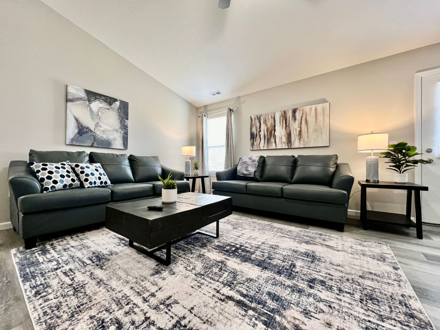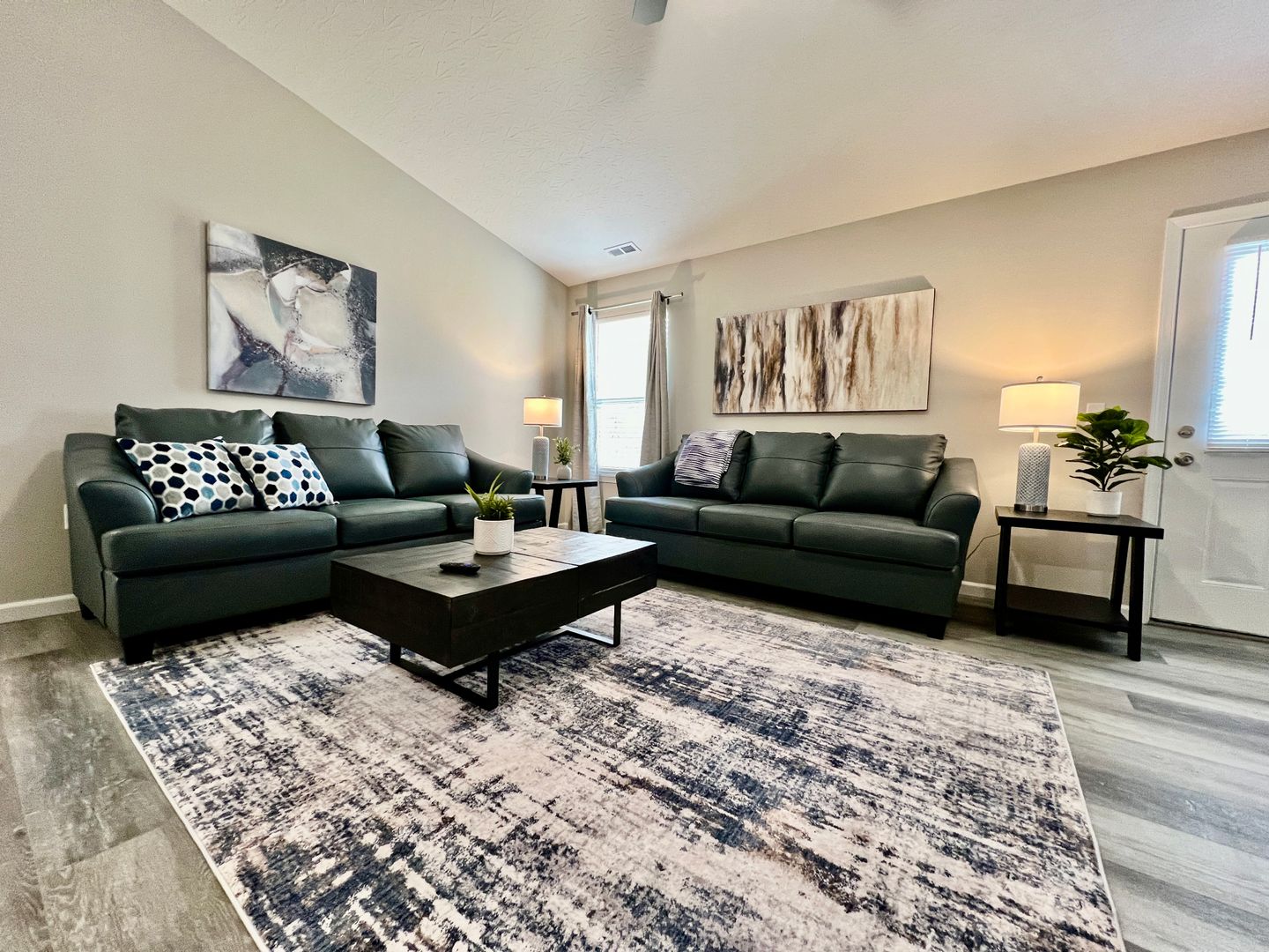 A blend of comfort, style, and convenience greets you as soon as you enter our newly built ranch home. While decorating this inviting retreat, we have worked hard to create a home away from home feeling for our guests. The open-concept floor plan in the living space allows room for many guests. Everyone in your group will have room to mingle and relax.