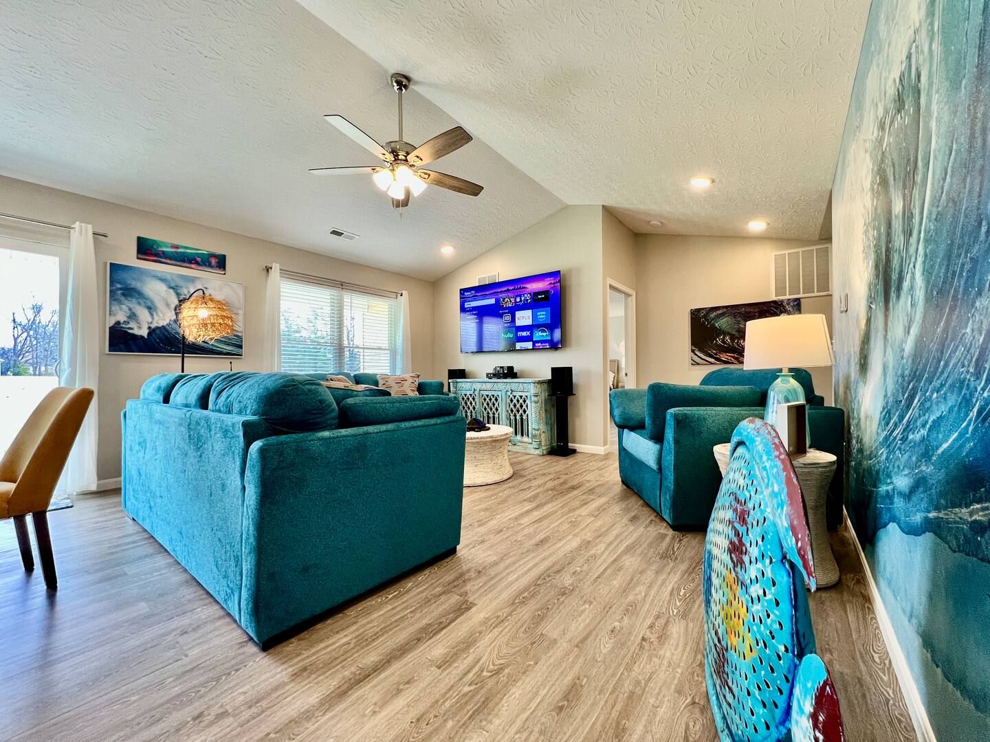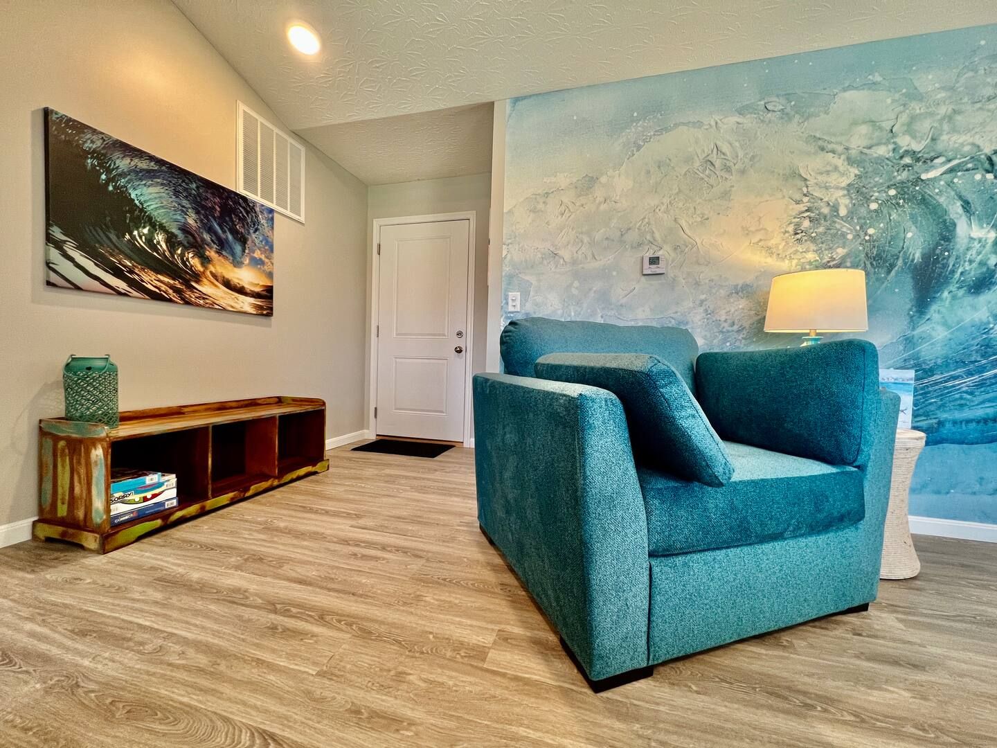 The living room is a part of the contemporary open floor plan. See what the chef is up to, help them set the table, or unwind on the cozy sofa with a good book.