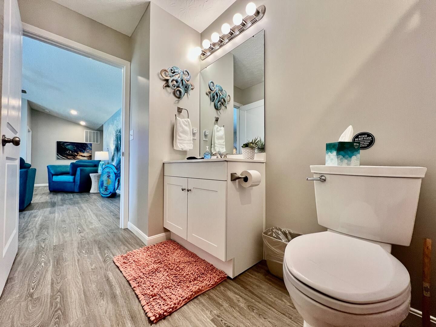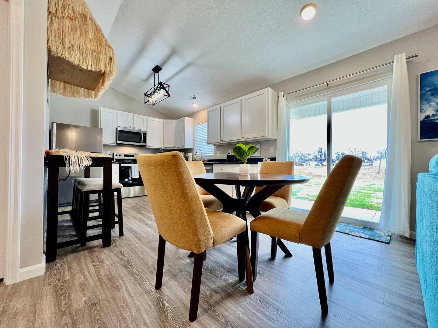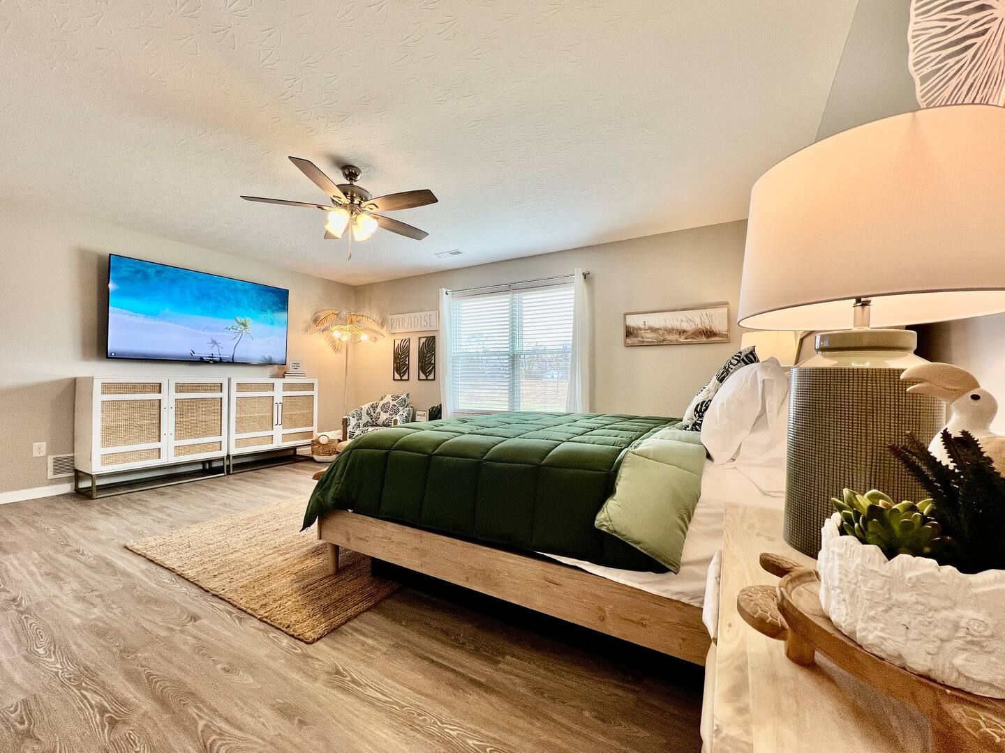 A blend of comfort, style, and convenience greets you as soon as you enter our newly built ranch home. While decorating this inviting retreat, we have worked hard to create a home away from home feeling for our guests. The open-concept floor plan in the living space allows room for many guests. Everyone in your group will have room to mingle and relax.