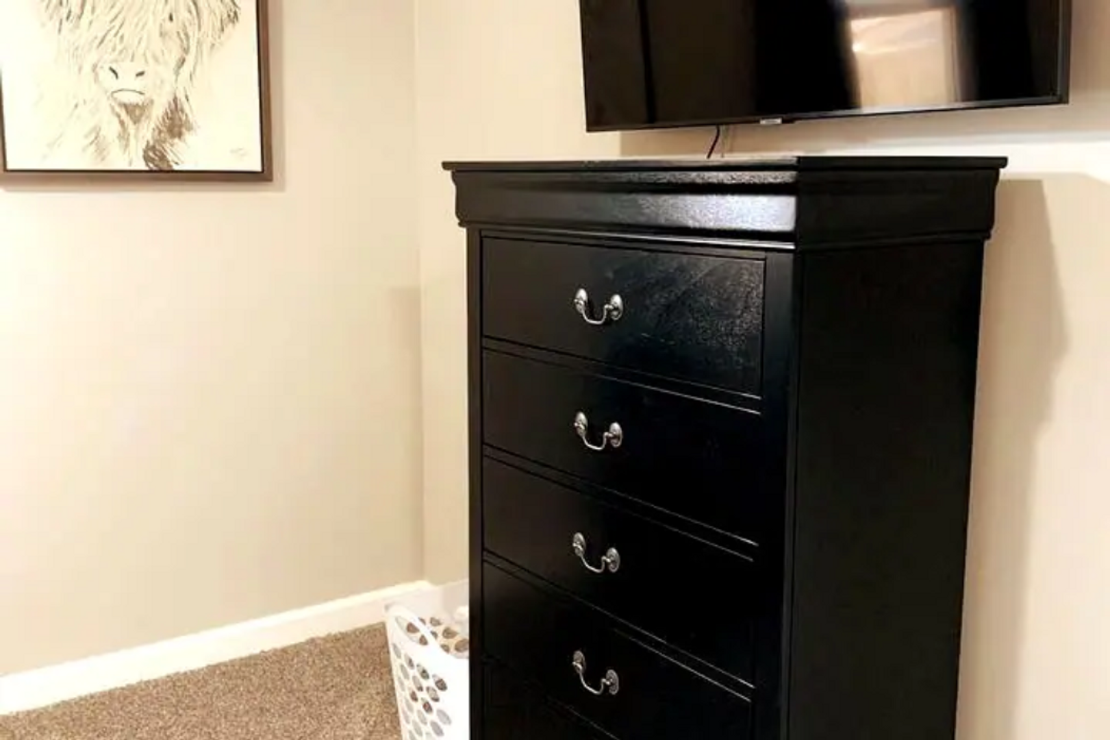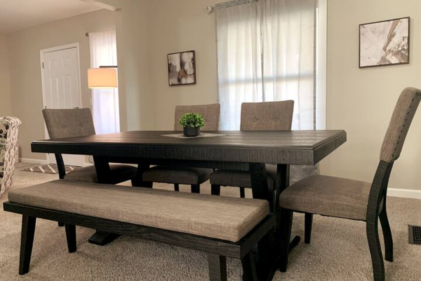 Upon walking in the home you are greeted by our living room area with a Smart TV, plus the view of the dining room with room for (6) to eat comfortably. Our cozy kitchen includes stainless steel appliances, plus a Keurig with plenty of coffee. Down the hallway you will find the full bathroom with walk-in shower, plus a queen bedroom with a Smart TV.