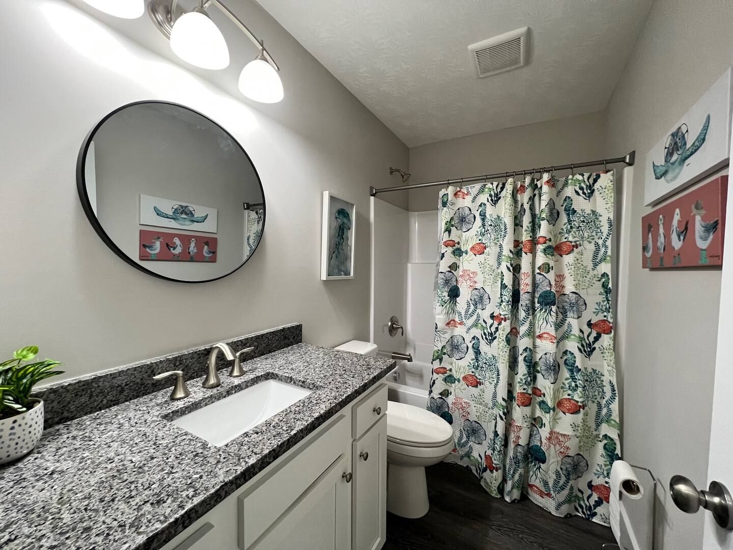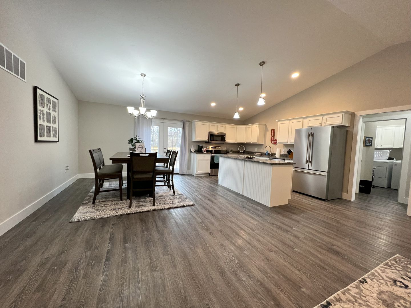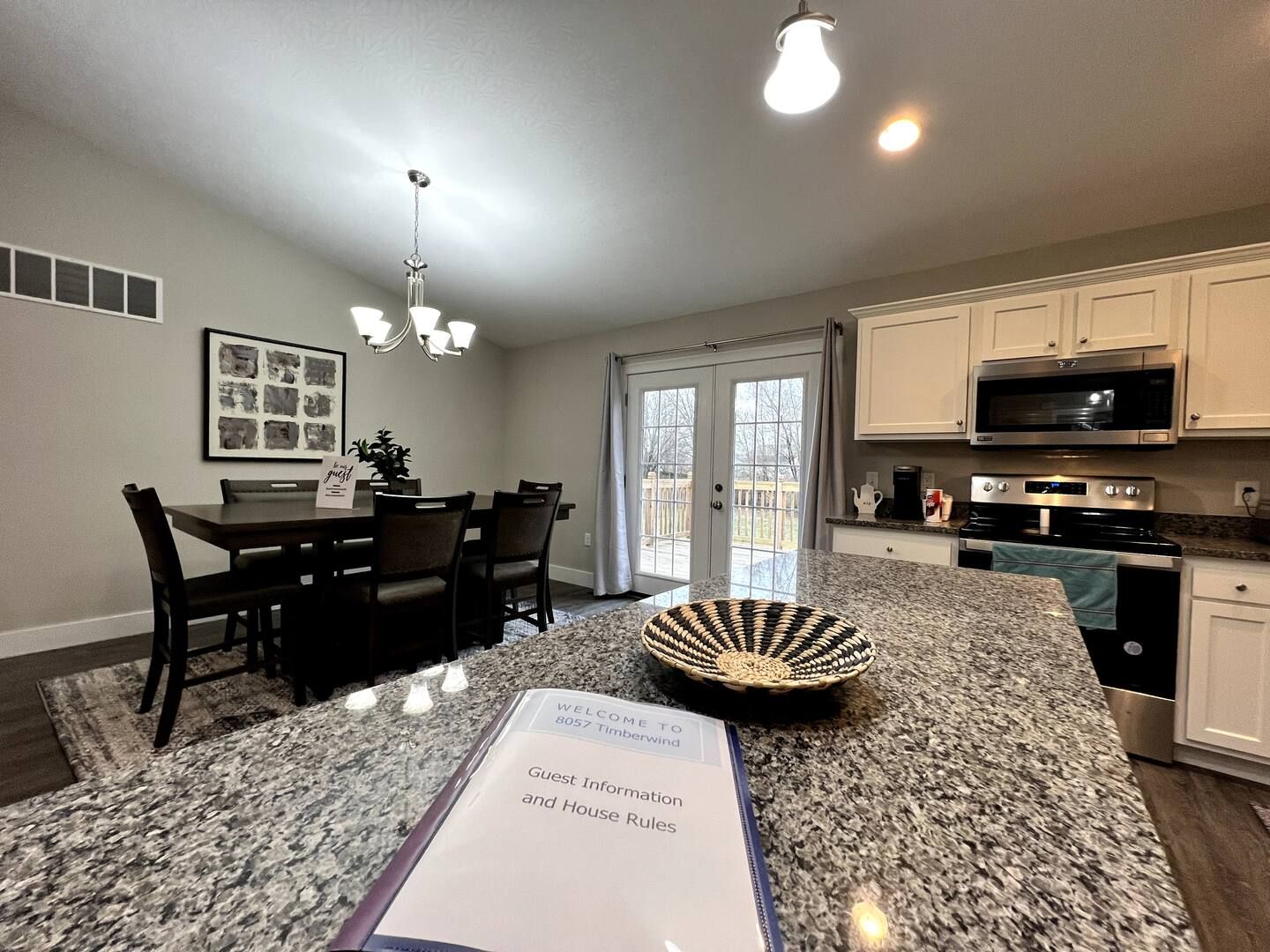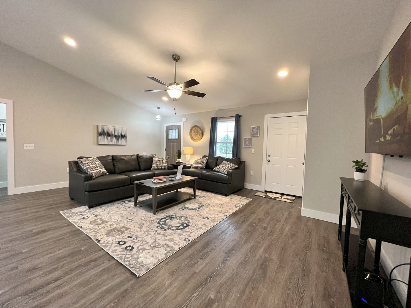 A blend of comfort, style, and convenience greets you as soon as you enter our newly built ranch home. While decorating this inviting retreat, we have worked hard to create a home away from home feeling for our guests. The open-concept floor plan in the living space allows room for many guests. Everyone in your group will have room to mingle and relax.
