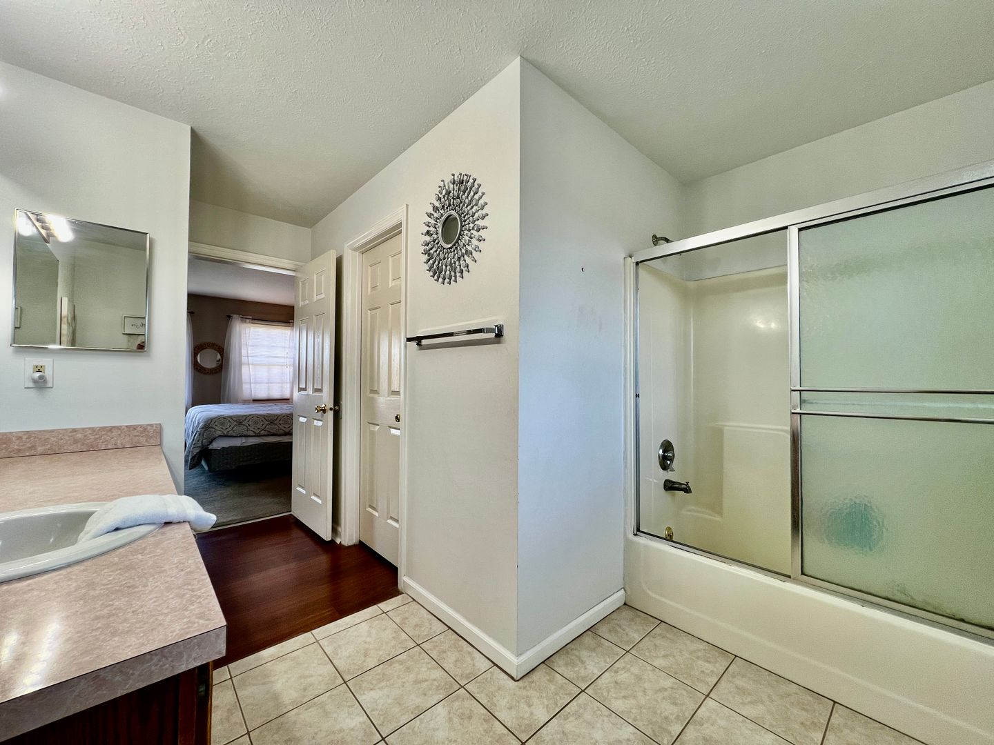 The other two bathrooms feature queen beds and plenty of storage for unpacking if you wish. There is a full-size bathroom in the hallway that these two bedrooms will share.