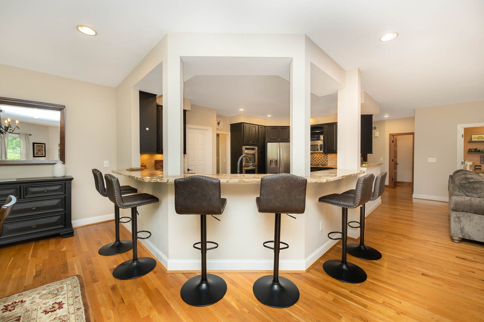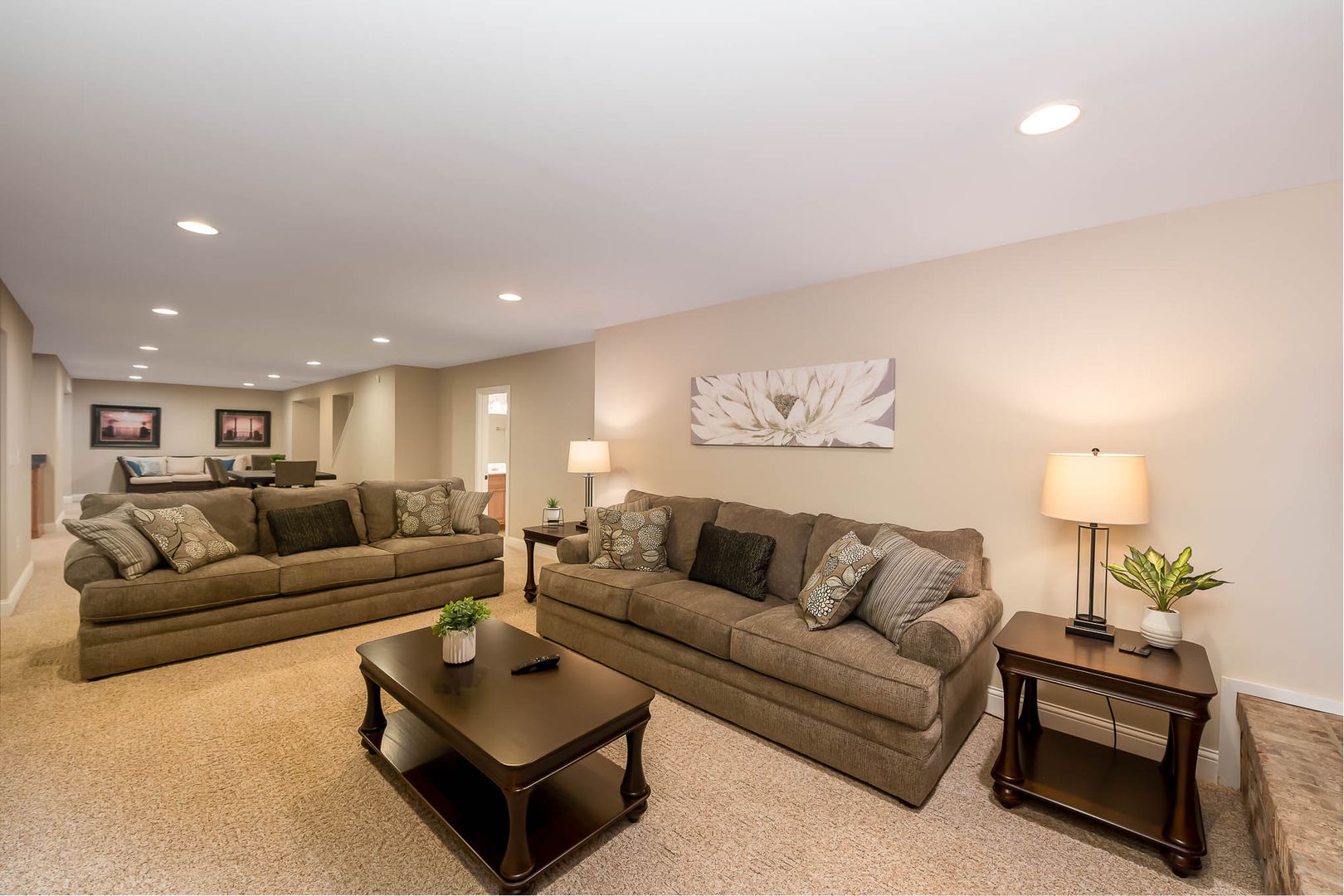 The living room is a part of the contemporary open floor plan. See what the chef is up to, help them set the table, or unwind on the cozy sofa with a good book.