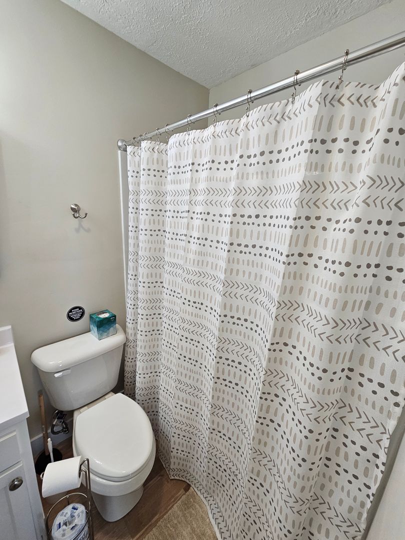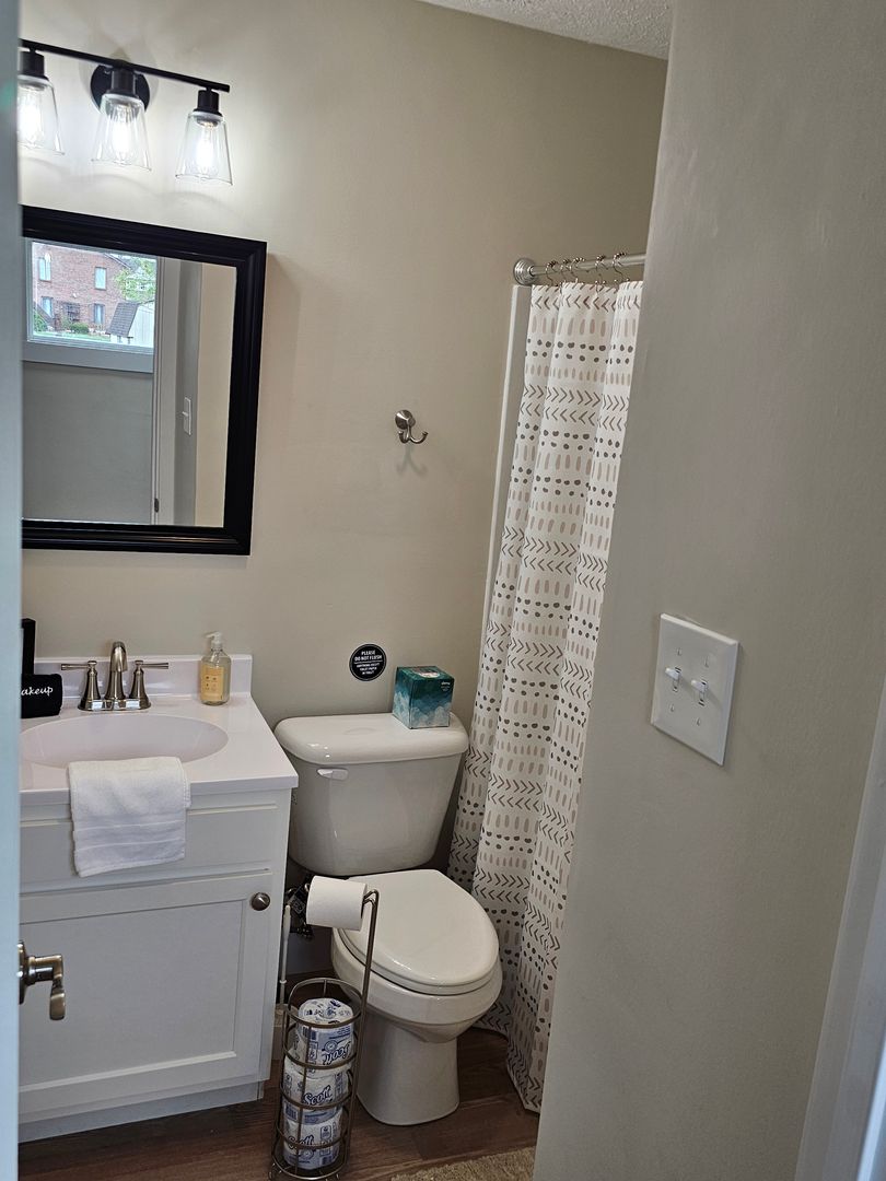 There is a full bathroom in the hallway to the other side of the kitchen with a tub/shower combination and under-the-sink storage. We provide towels and basic disposable toiletries for you to use during your stay.
