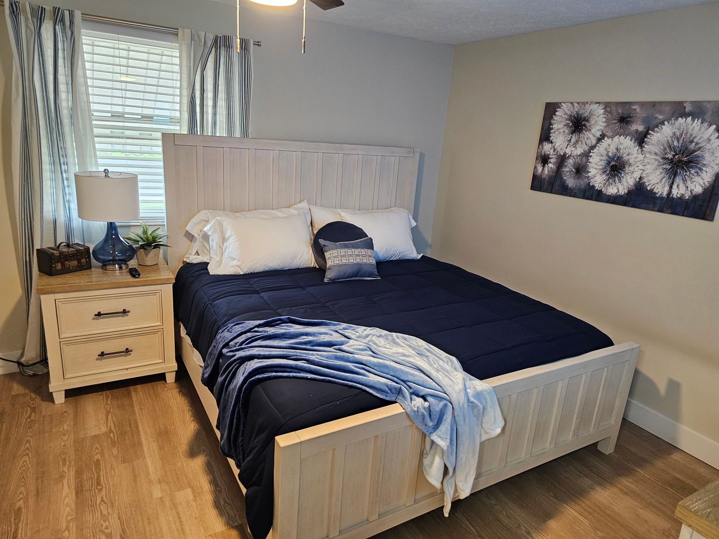 The third bedroom is located off the living room near the front door. This bedroom has a queen-size pull out sofa and 55" Smart TV.