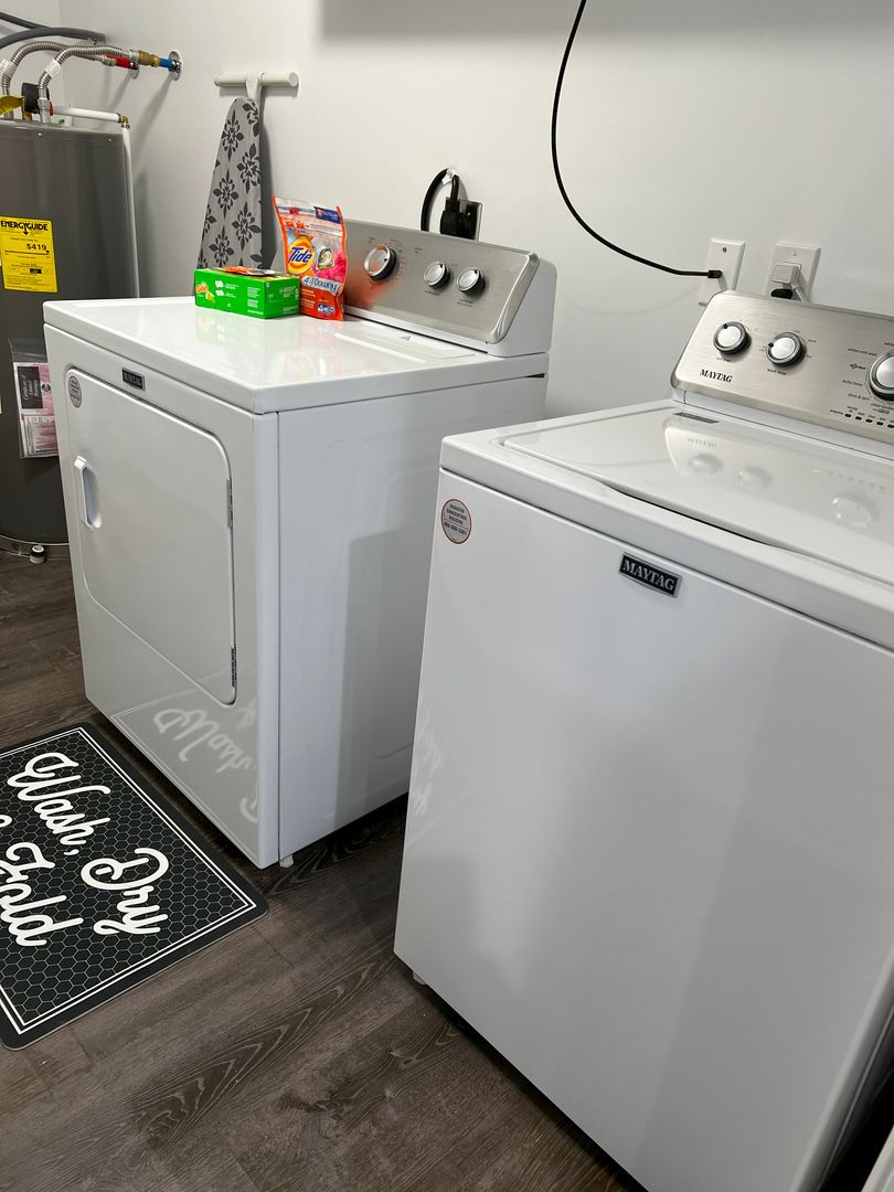 Don't worry about your laundry needs as we have a free full-size washer and dryer in the house. Detergent, dryer sheets, iron and ironing board are all located here!