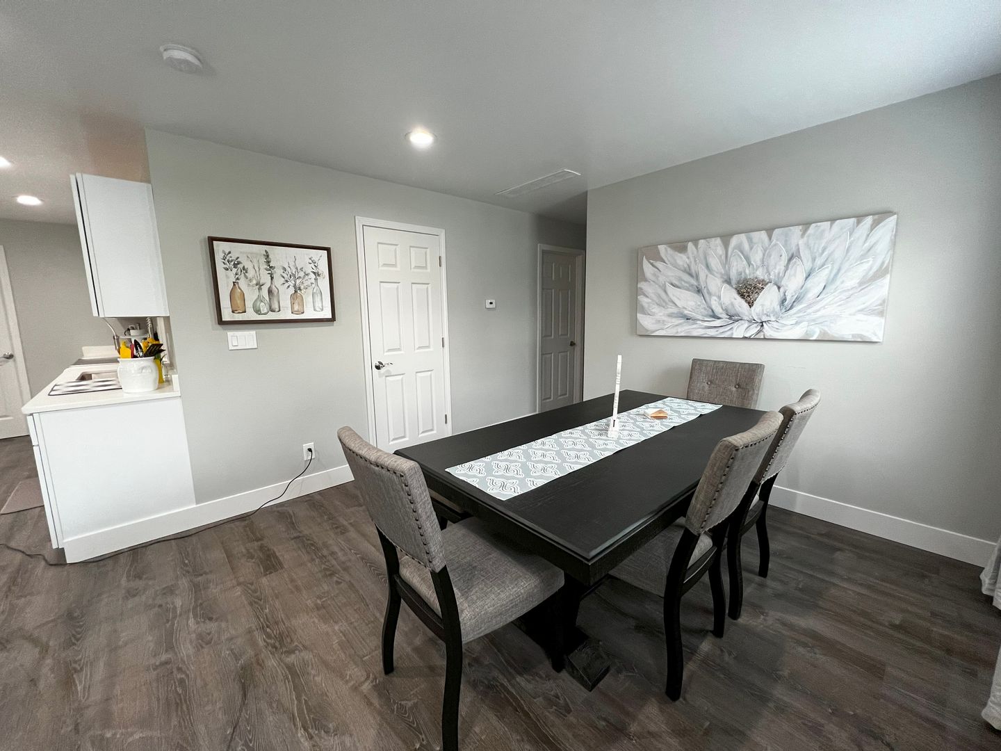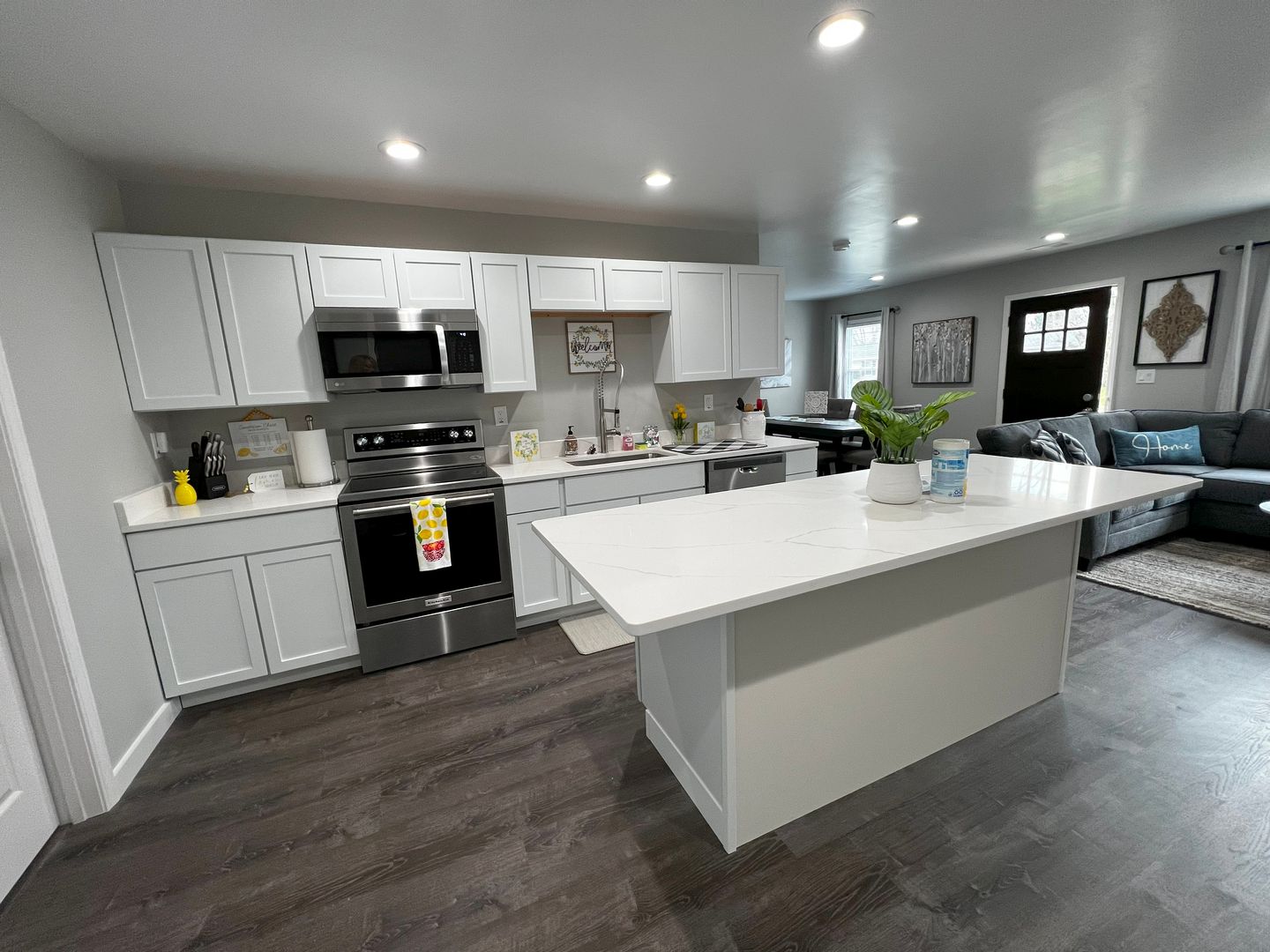 The kitchen, living room and dining area are open to one another, which makes it convenient to enjoy your time together while cooking, eating or simply relaxing on the sectional.