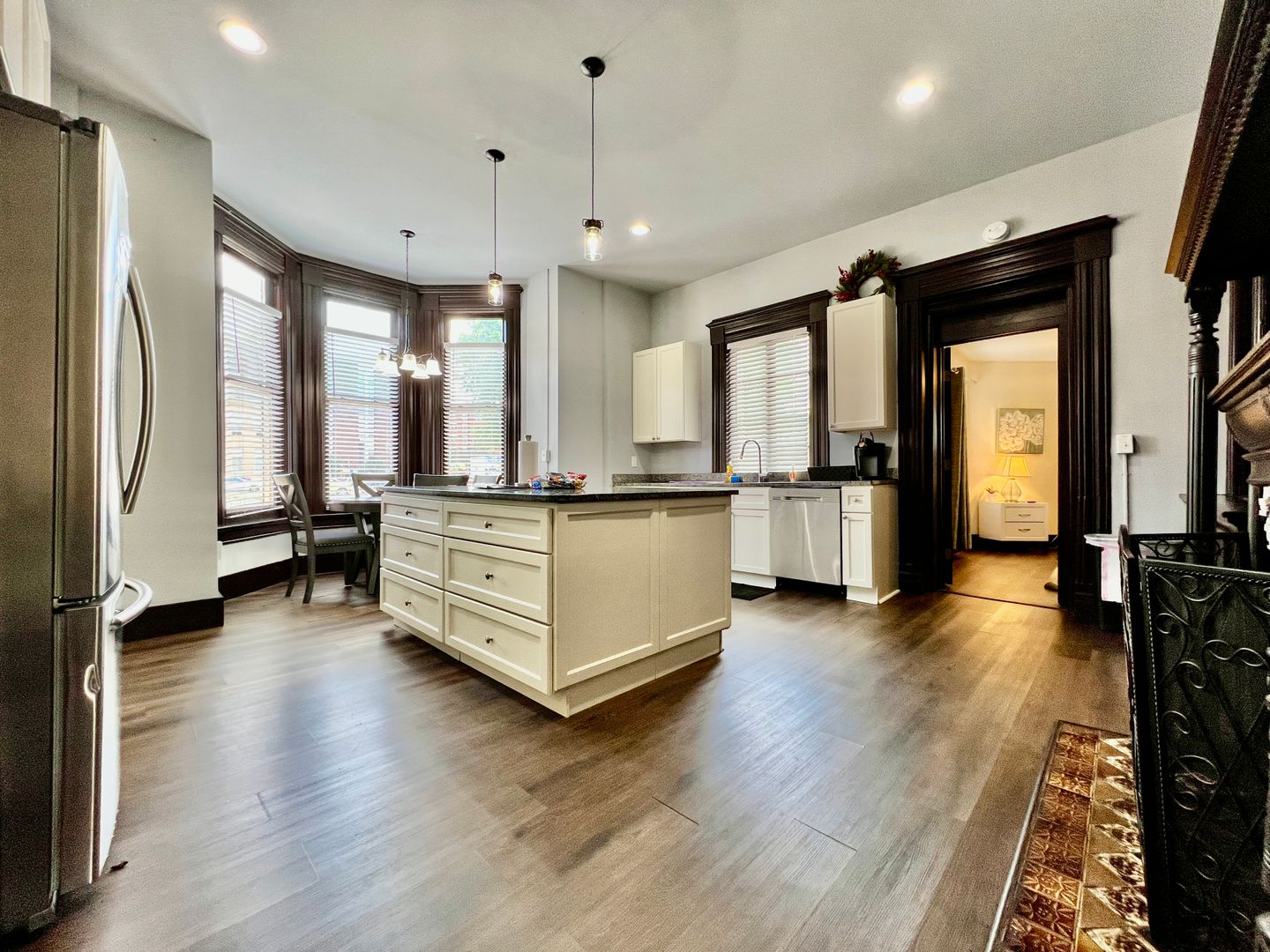 Modern feel in this 3500 square foot 1940's 3-story mansion nestled just inside the German Village of Downtown Hamilton. Whether you are here for an event at Spooky Nook, a family getaway to Kings Island, or a work retreat, this home is perfect for your large group! Conveniently located between both the Dayton airport and Cincinnati Northern Kentucky Airport (CVG). Walking distance to the river, downtown, dining along river, and shopping.