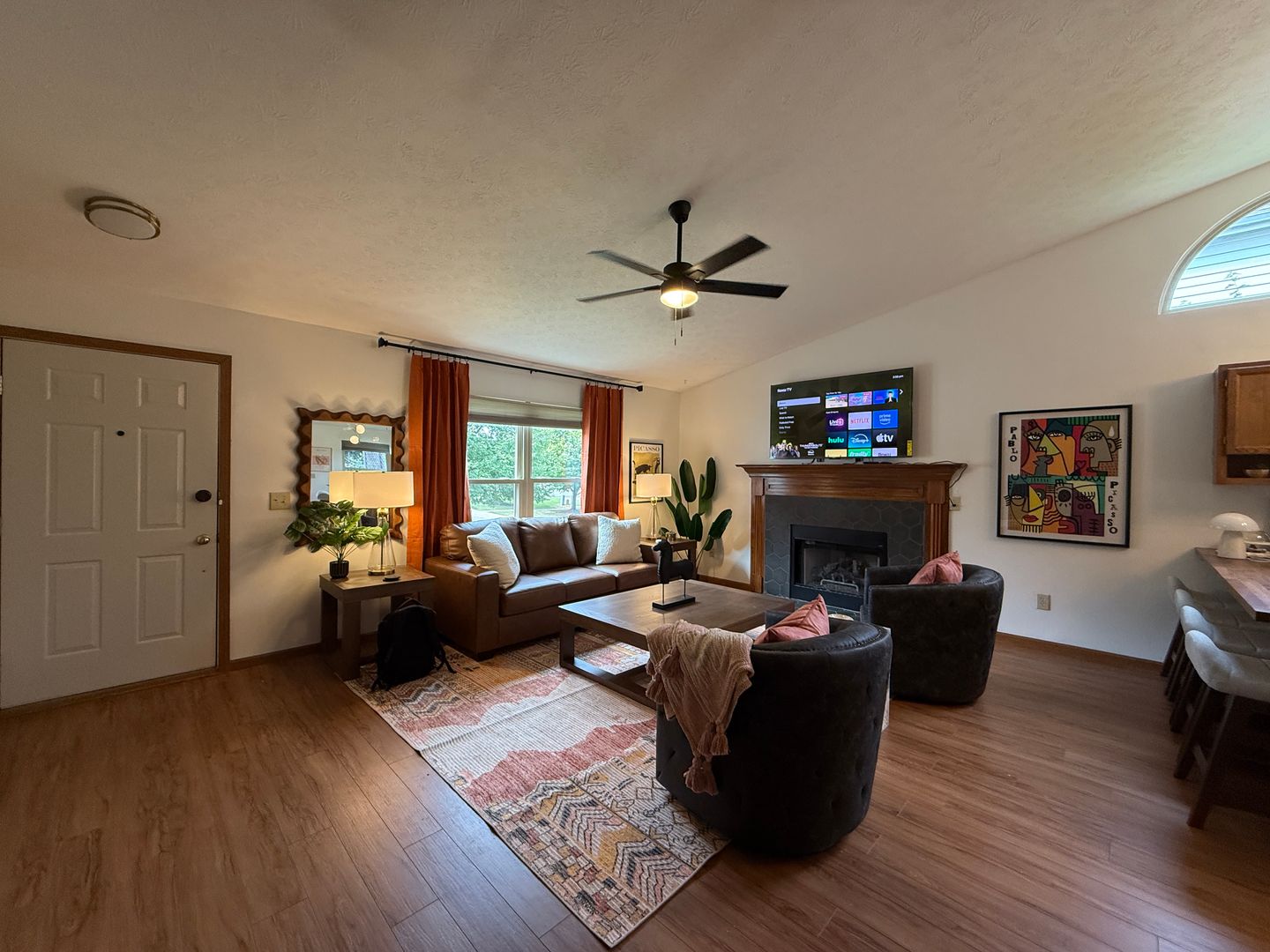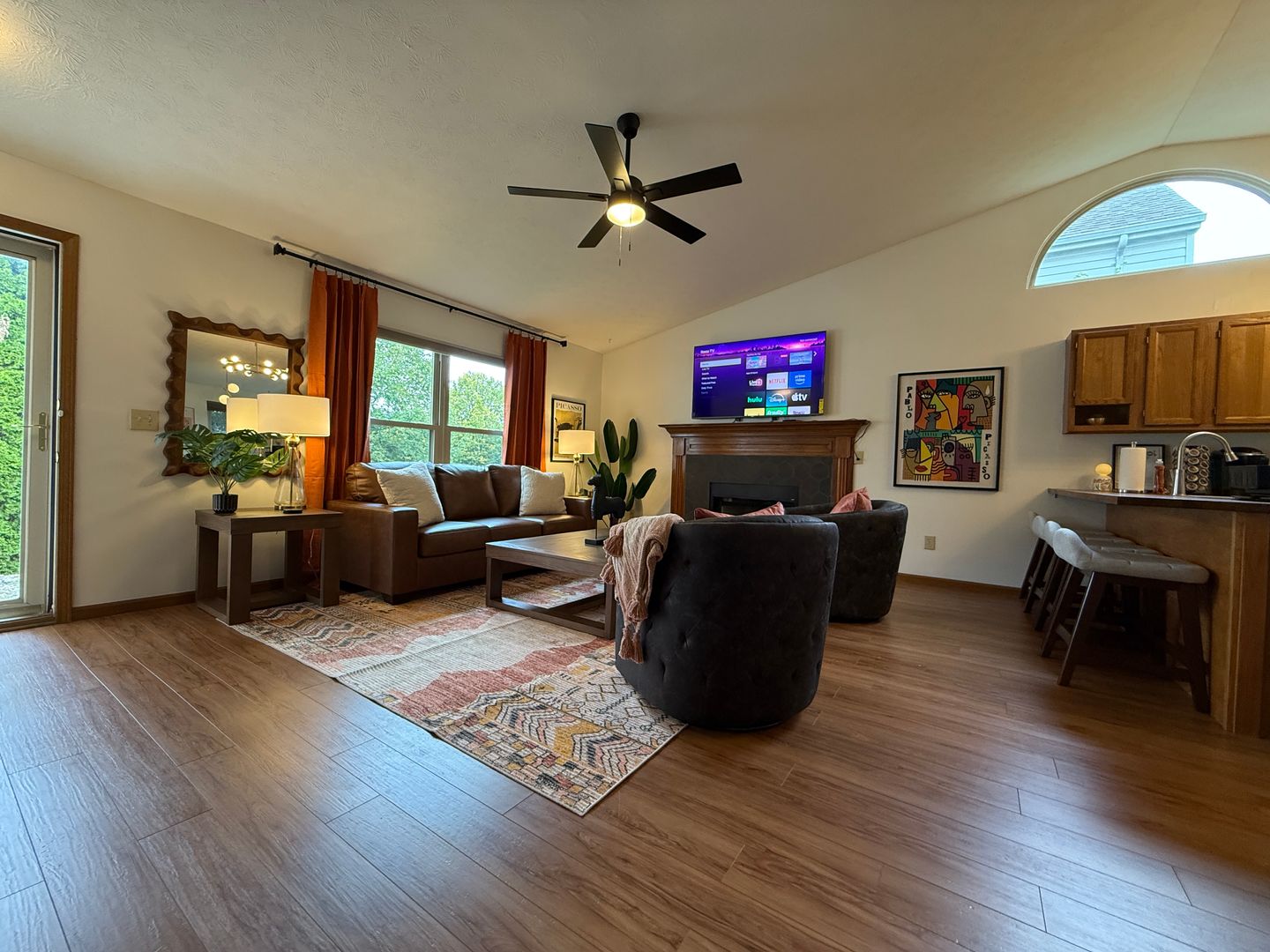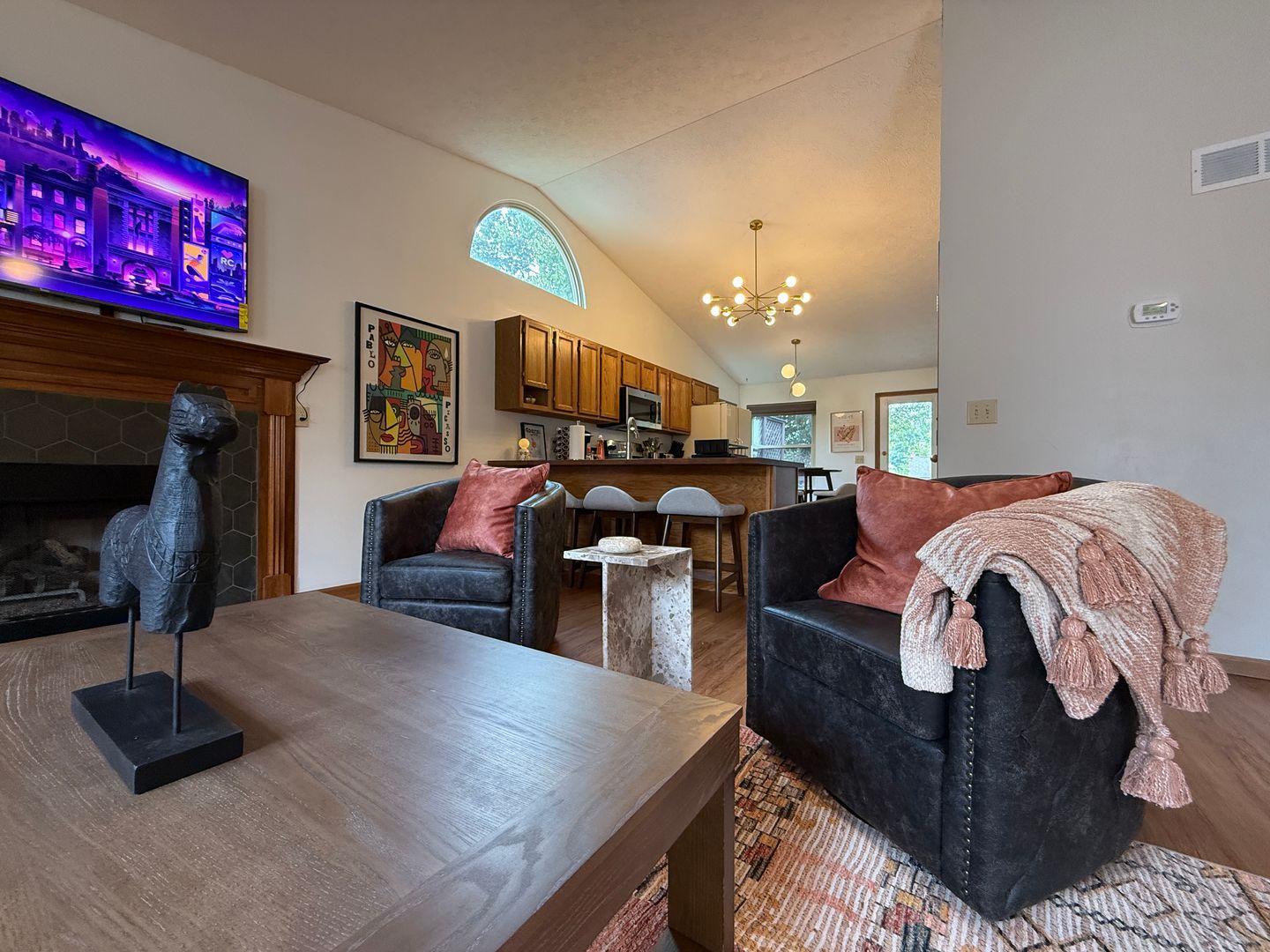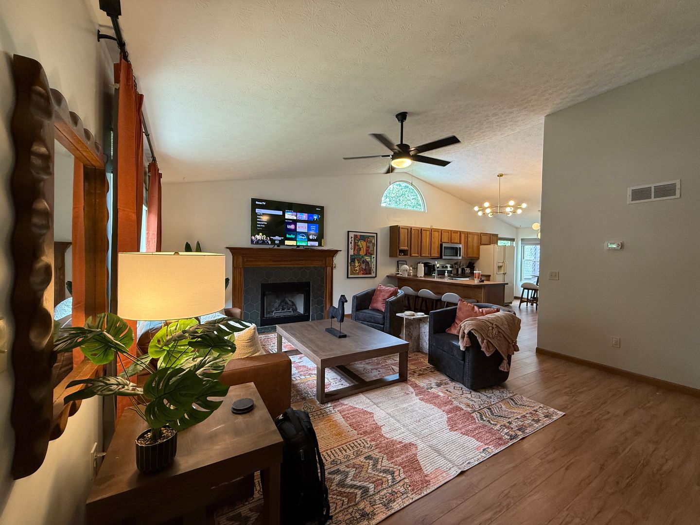 A blend of comfort, style, and convenience greets you as soon as you enter our ranch home. While decorating this inviting retreat, we have worked hard to create a home away from home feeling for our guests. The open-concept floor plan in the living space allows room for many guests. Everyone in your group will have room to mingle and relax.