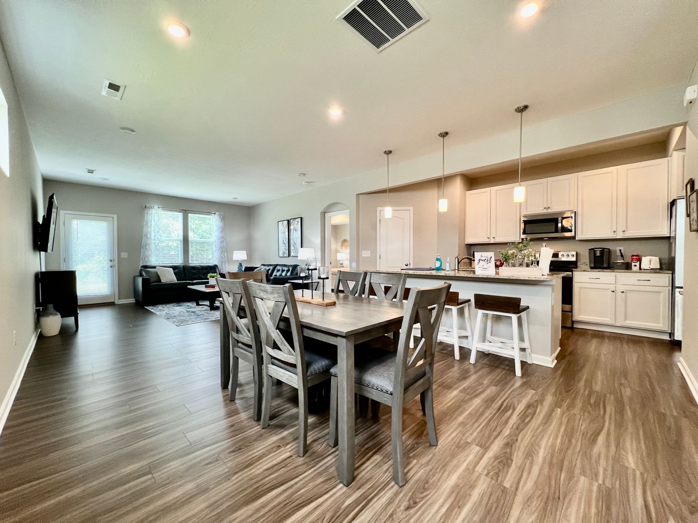 When you walk in the front door you will be greeted by a large living space, dining area and kitchen (with your most needed appliances). Relax and unwind in front of the large smart TV, or cook up a tasty meal with our brand new stainless steel appliances, including an LG refrigerator that features a "craft icemaker" for your old-fashioned or just straight up bourbon!