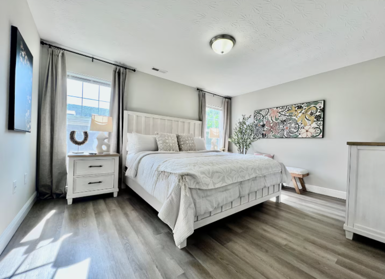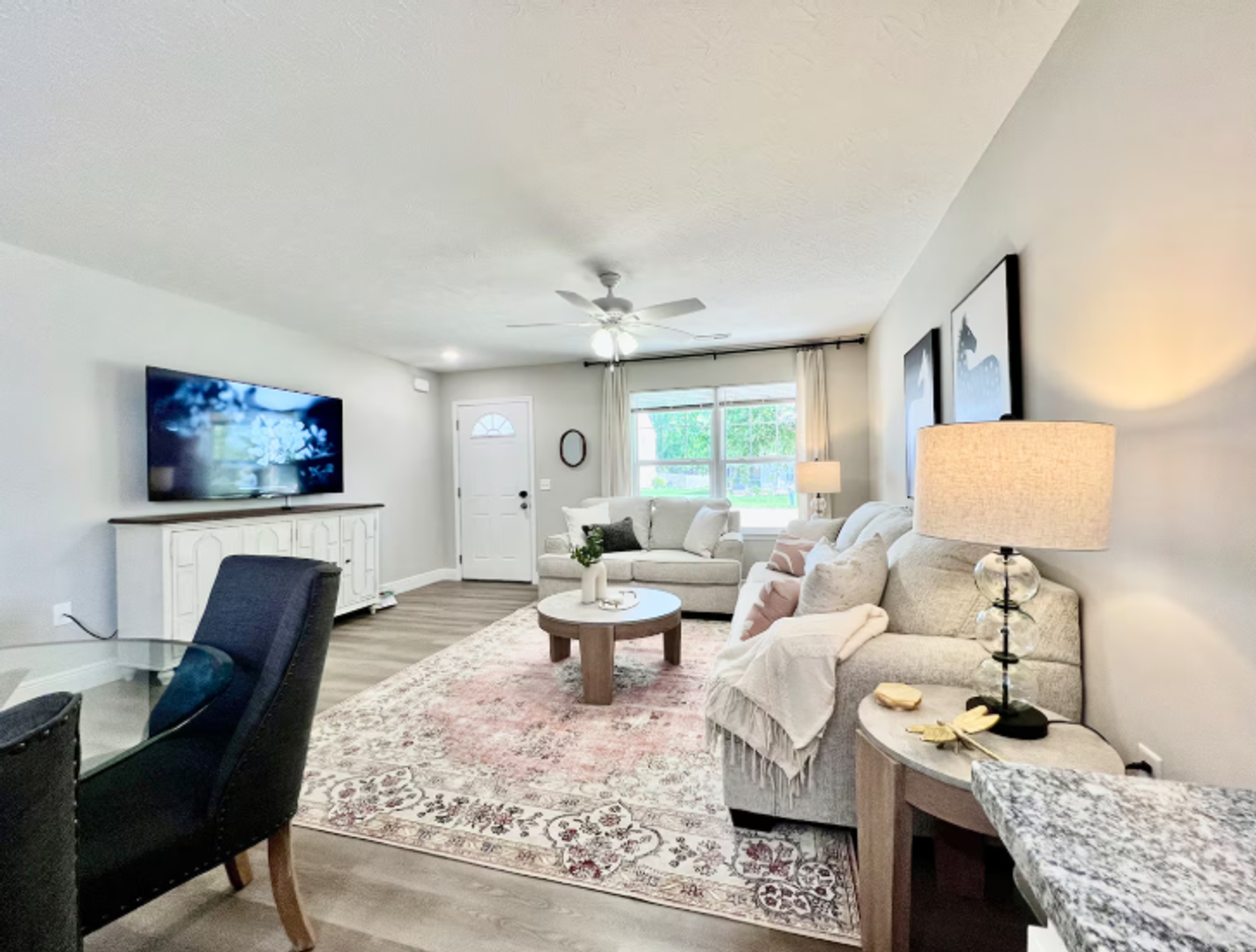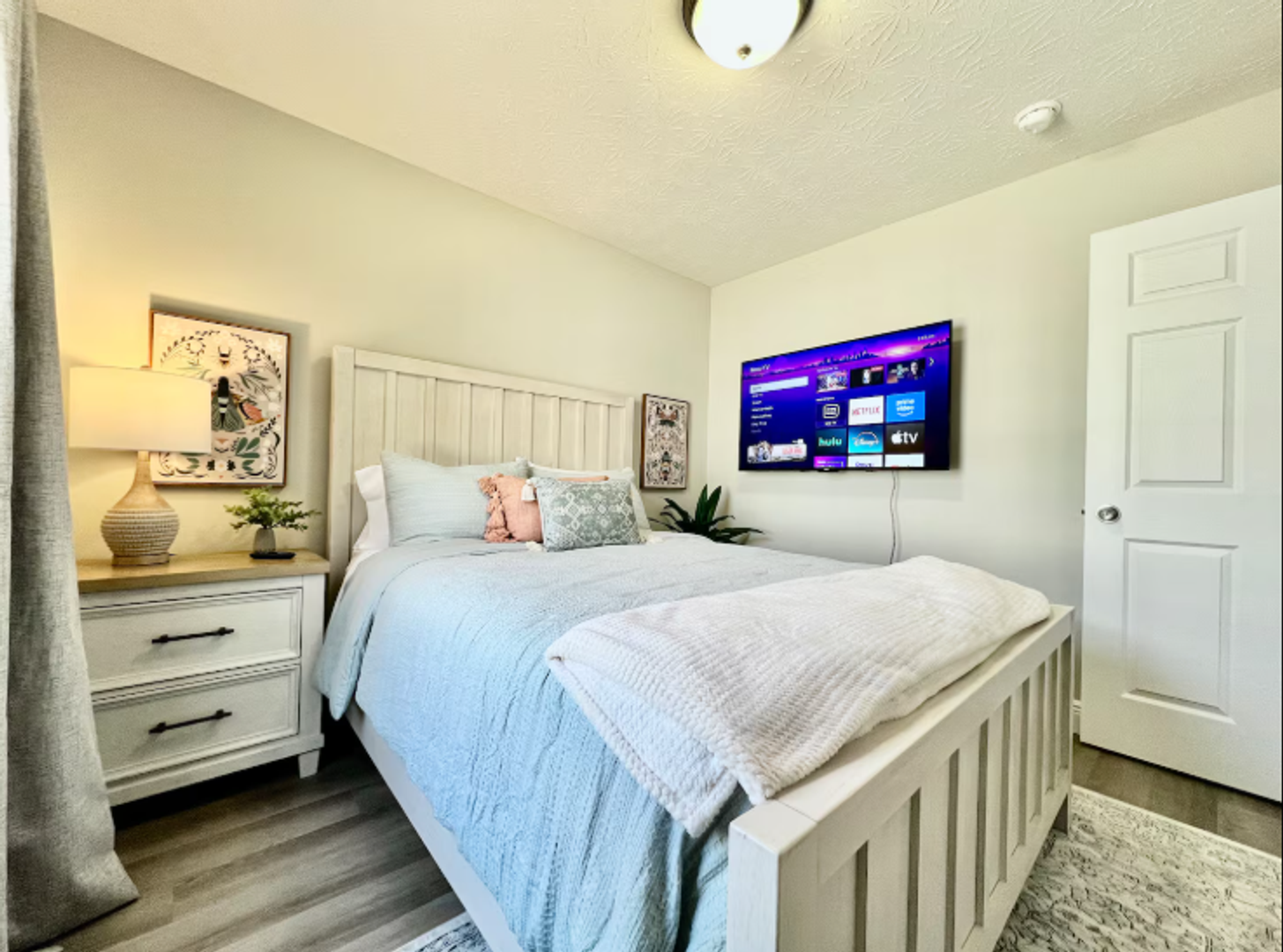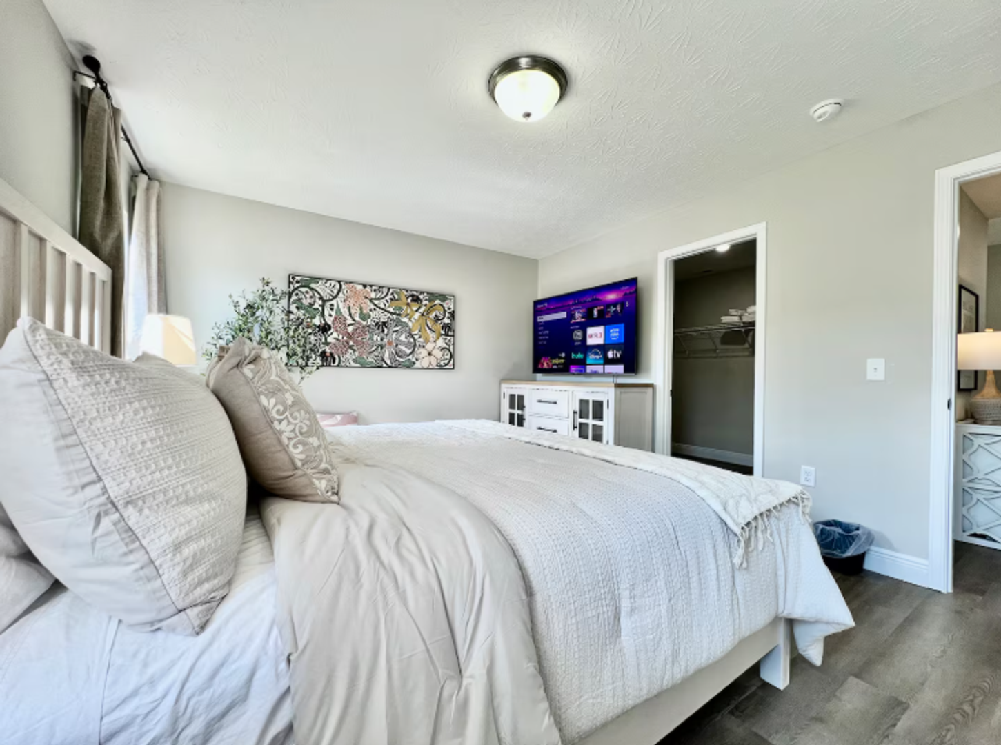 A blend of comfort, style, and convenience greets you as soon as you enter our newly built ranch home. While decorating this inviting retreat, we have worked hard to create a home away from home feeling for our guests. The open-concept floor plan in the living space allows room for many guests. Everyone in your group will have room to mingle and relax.