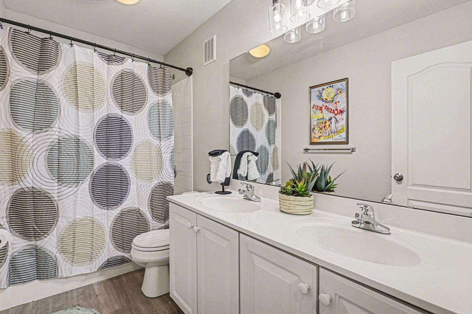 As you already know, the master bedroom features its ensuite bath with shower and relaxing tub. There is full bathroom that caters to the remaining bedrooms. Half Bath on the main level for guest that are visiting. Half Bathroom on the lower level game room. You don't have to worry about packing towels or essential toiletries, as we have already prepared these for you.