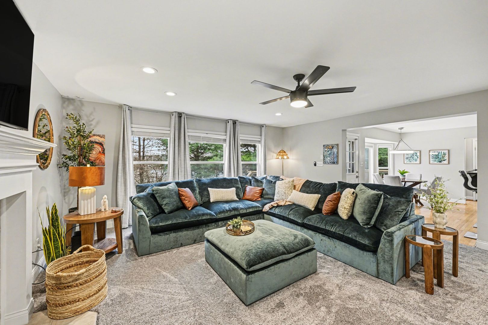The living room is a part of the contemporary open floor plan. See what the chef is up to, help them set the table, or unwind on the cozy sofa with a good book.