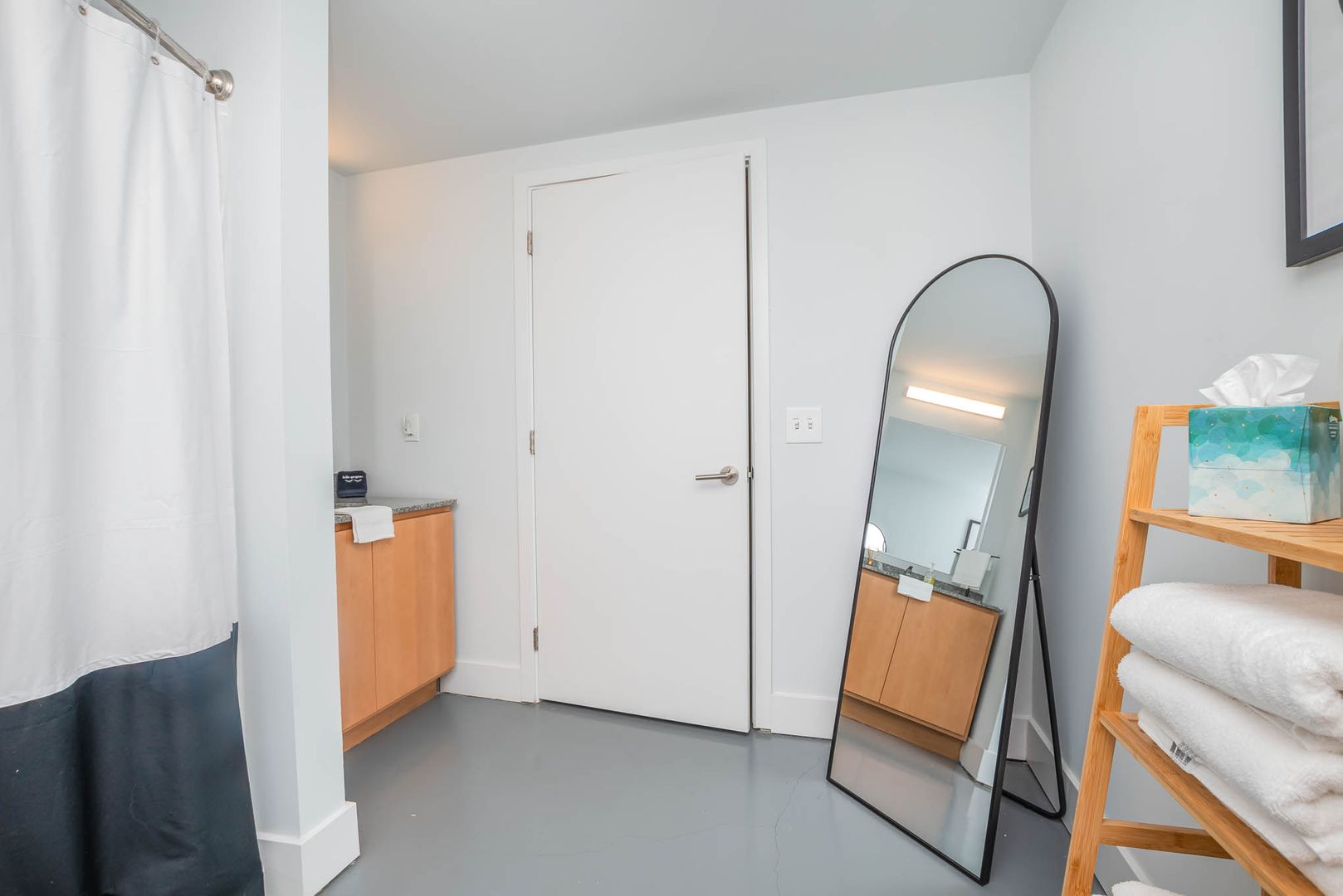 This bathroom is attached to the second-floor bedroom. It is a walk-in shower with a full-length mirror. We proved all the towels and extra consumable toiletries during your stay.