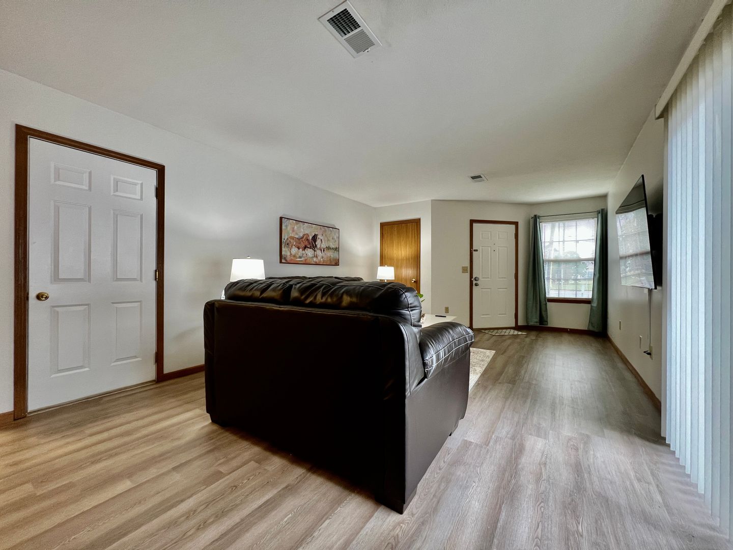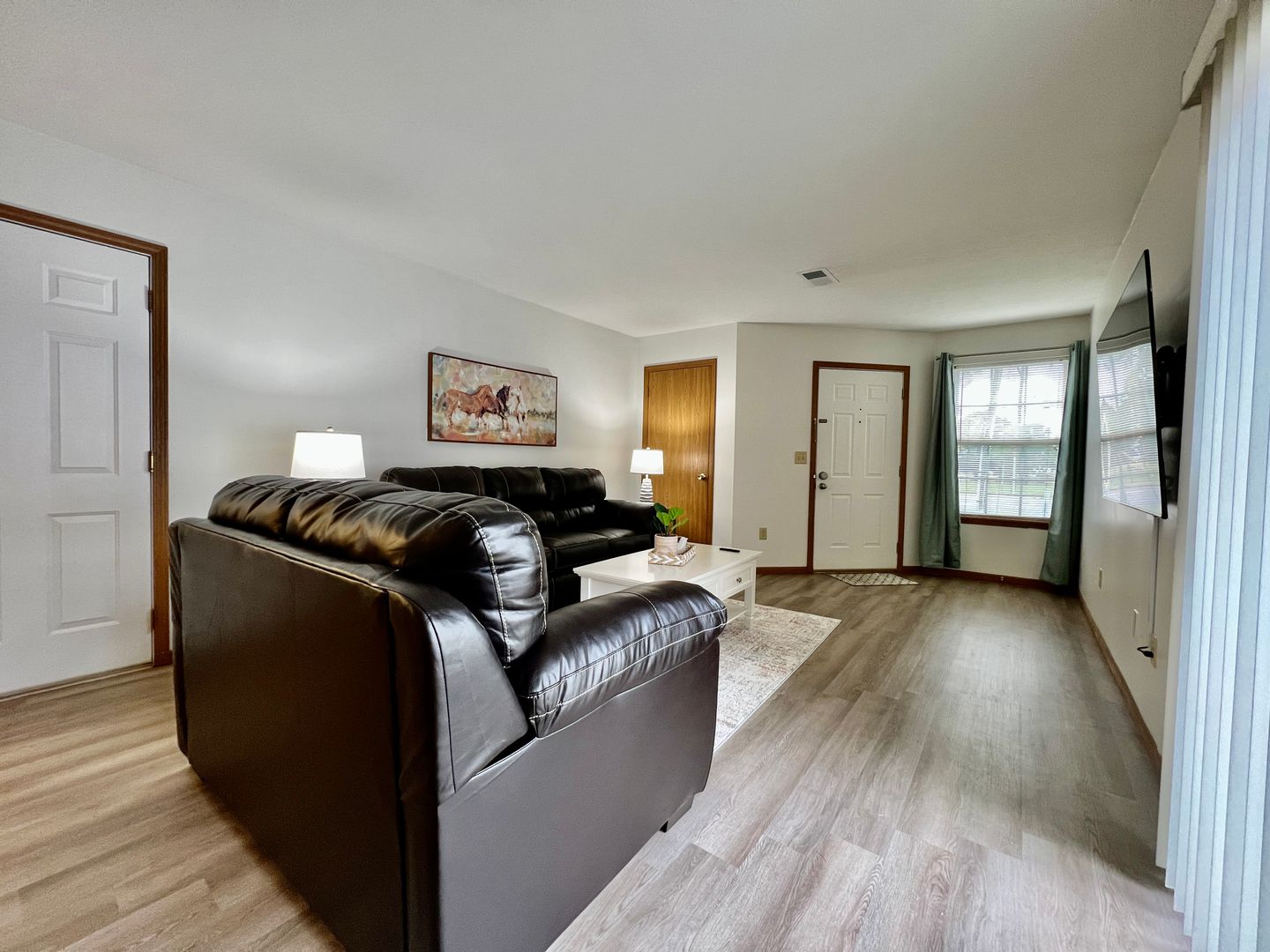 When you enter the home, you are greeted by a cozy living room with two comfortable sofas. There is a large flat-screen TV with Roku. Sit and visit with your guests while watching your favorite movie or show.