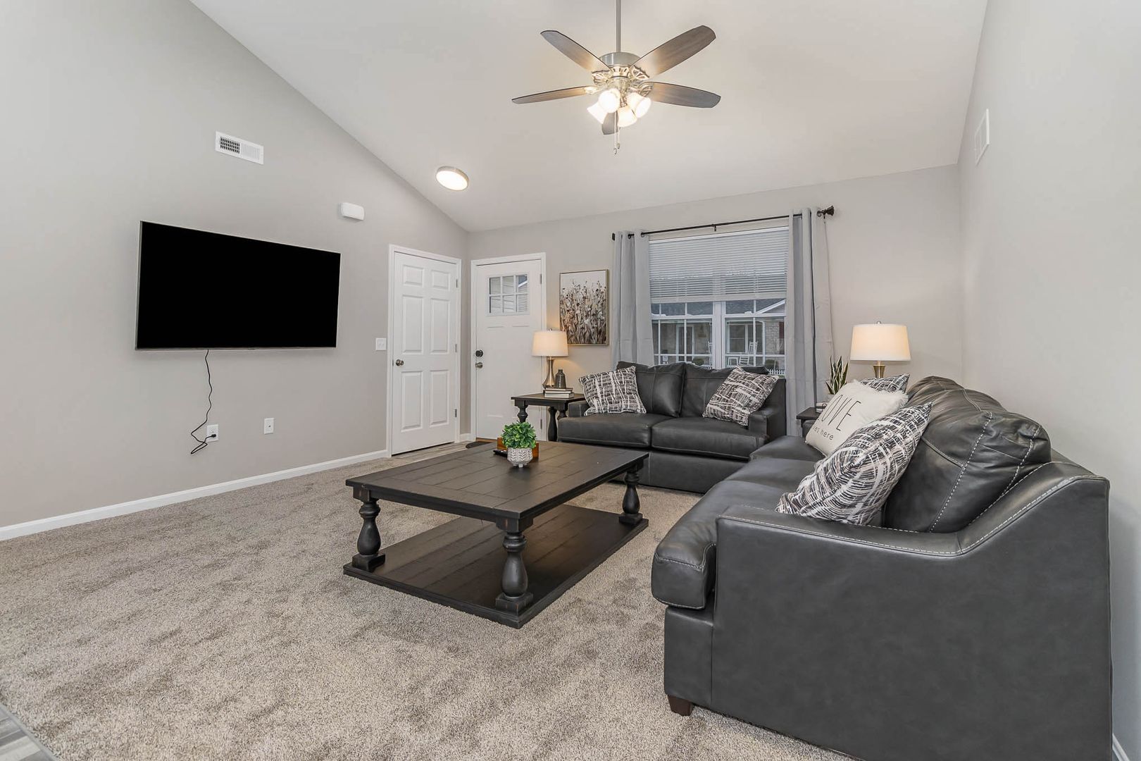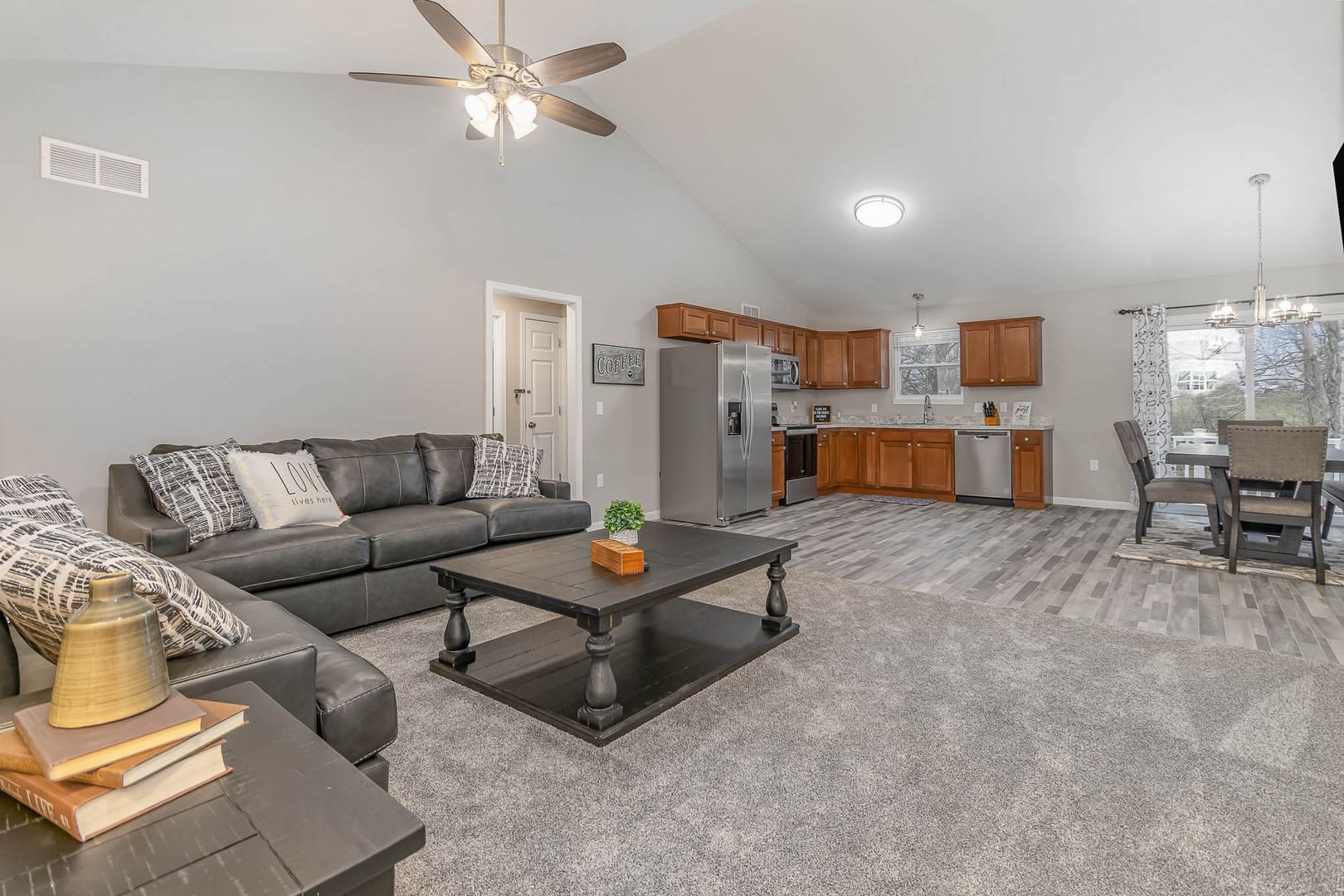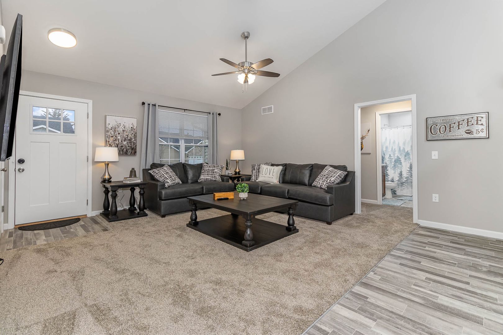 The living room is a part of the contemporary open floor plan. See what the chef is up to, help them set the table, or unwind on the cozy sofa with a good book.