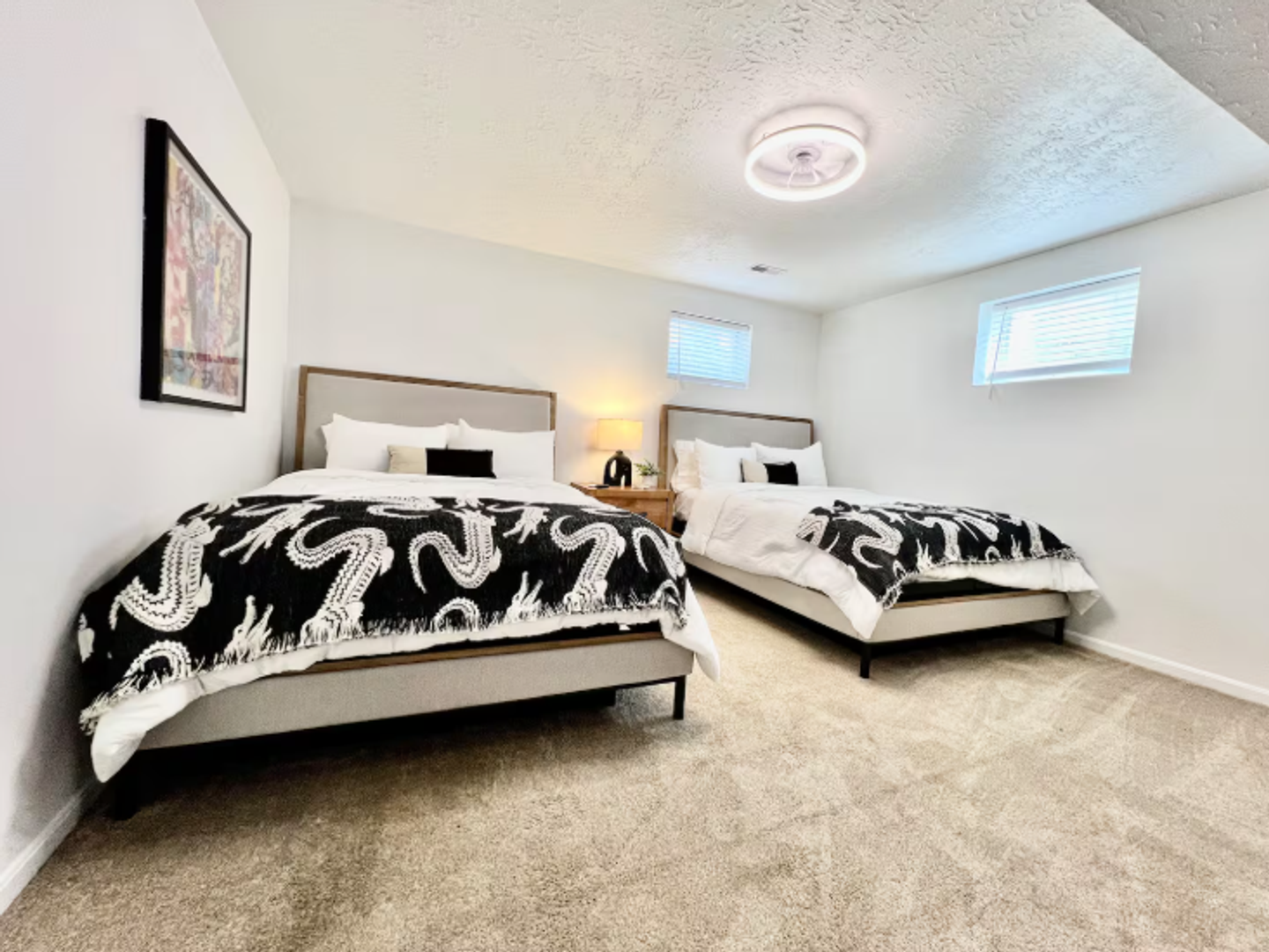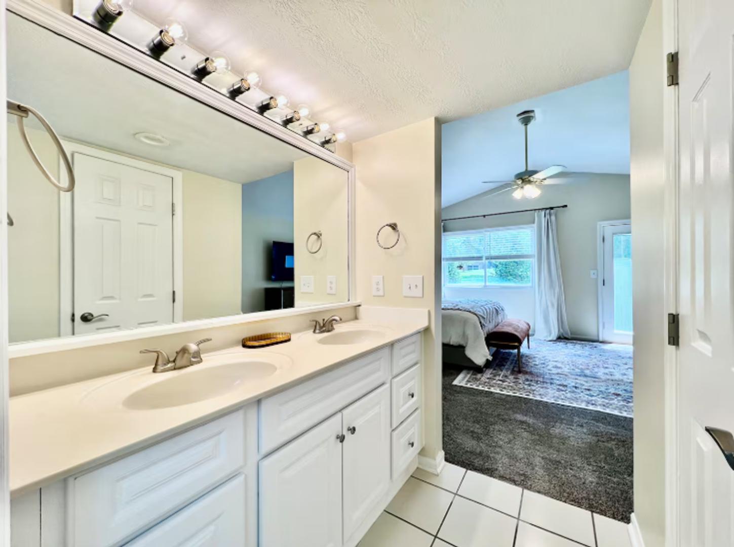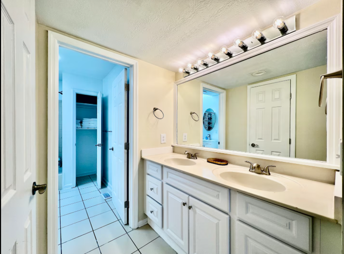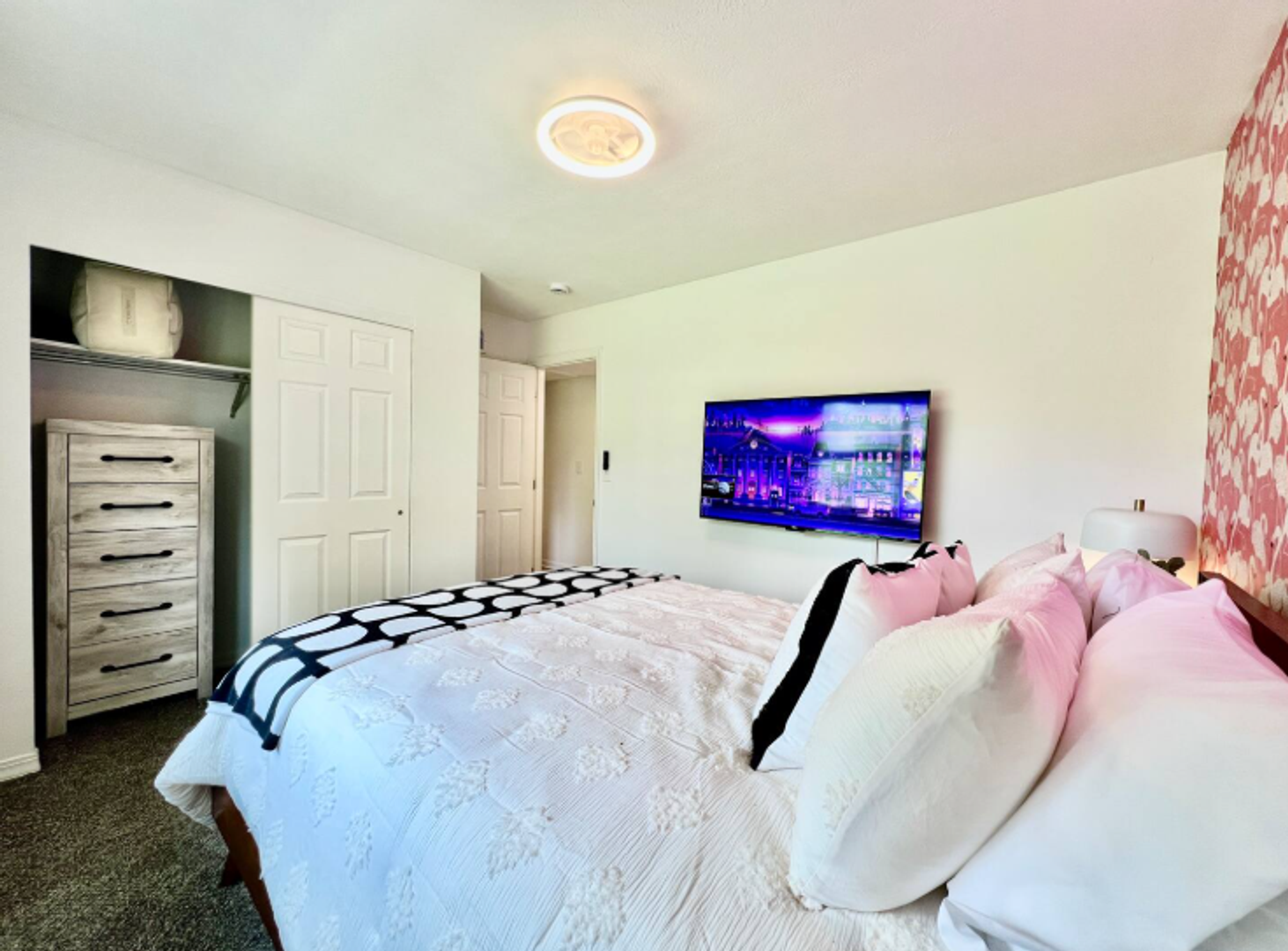 The double queen bedroom is perfect for children. This bedroom features two queen-size beds., a walk in closet and ceiling fan. There is also a large flat-screen TV which is perfect for a fun sleepover.