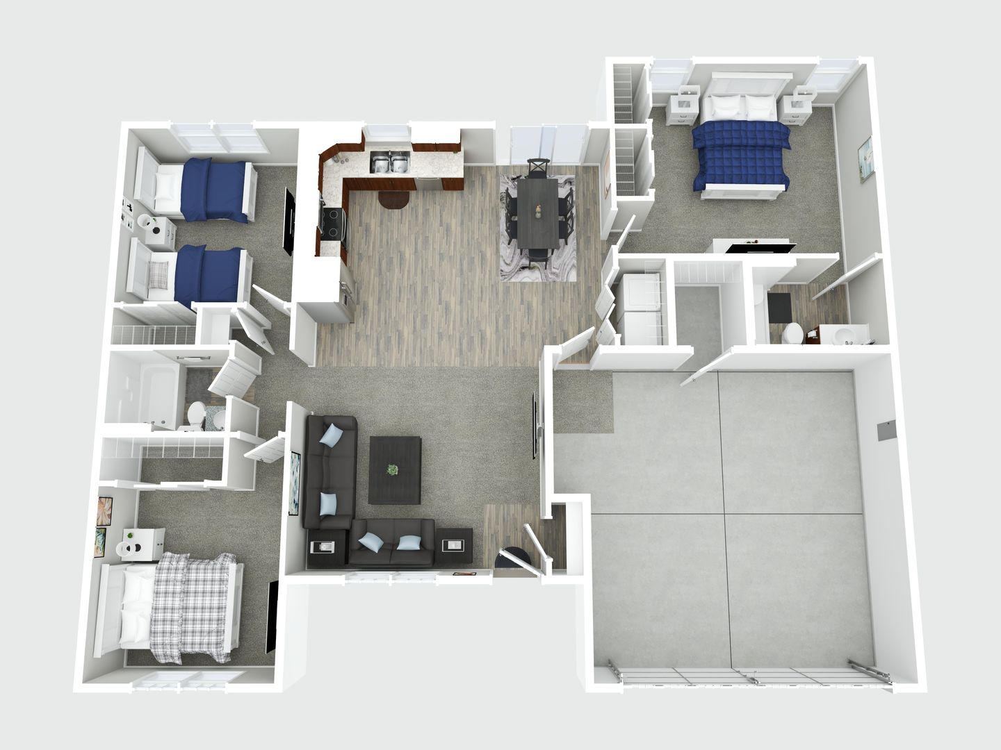 A blend of comfort, style, and convenience greets you as soon as you enter our newly built ranch home. While decorating this inviting retreat, we have worked hard to create a home away from home feeling for our guests. The open-concept floor plan in the living space allows room for many guests. Everyone in your group will have room to mingle and relax.