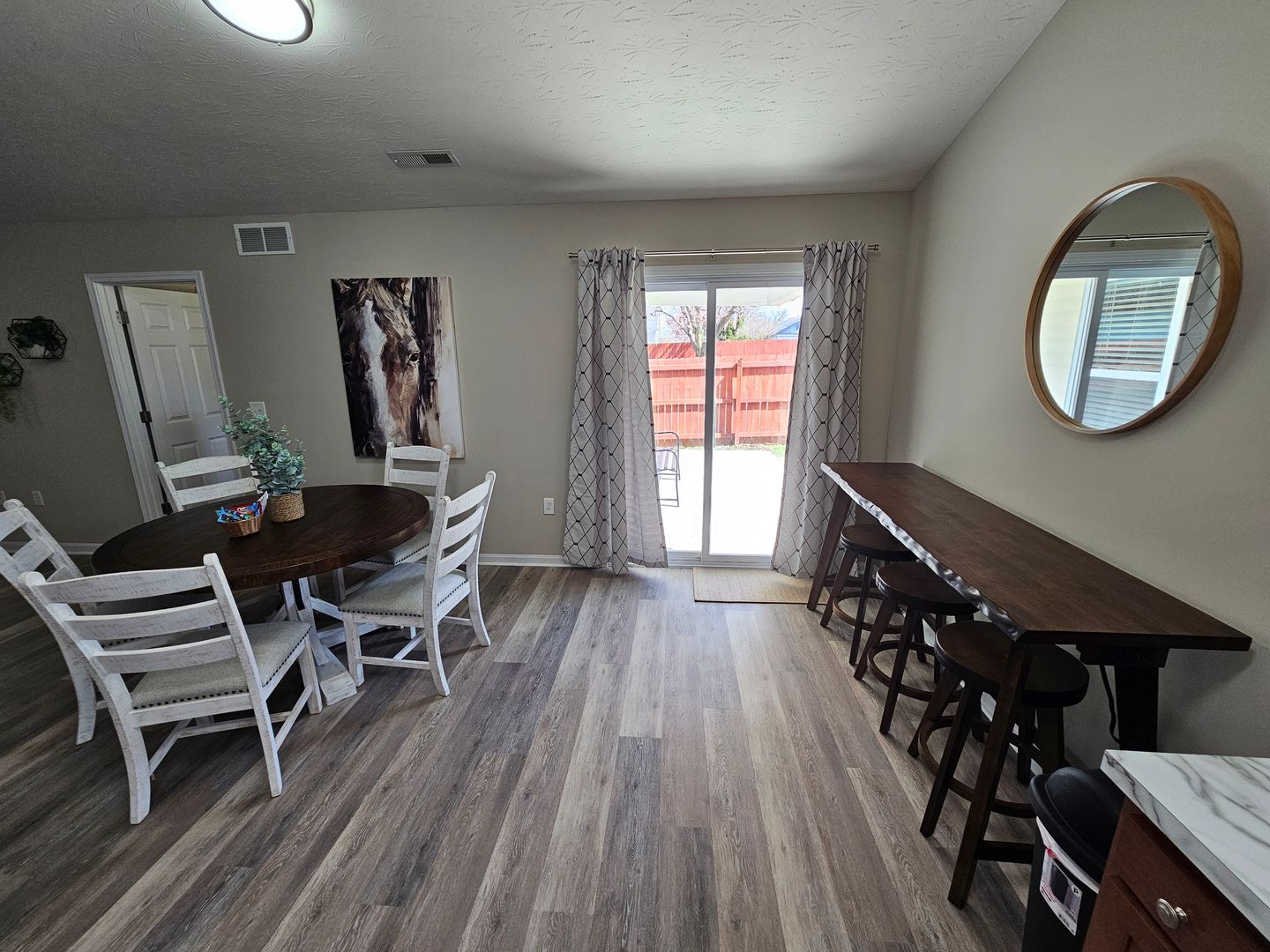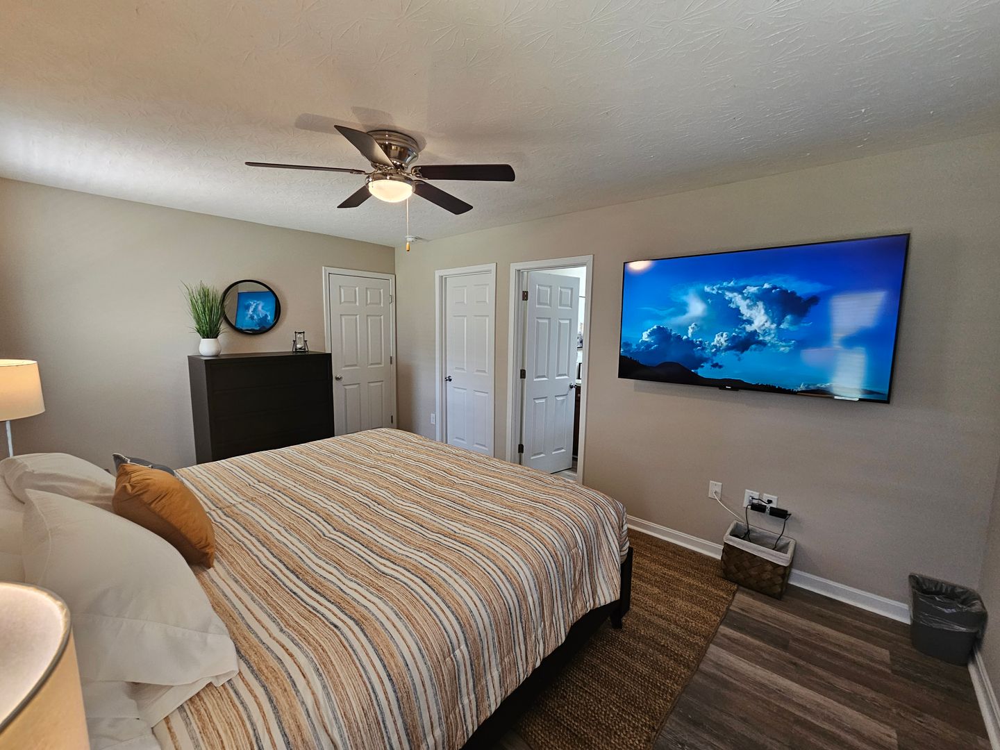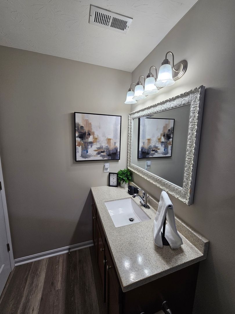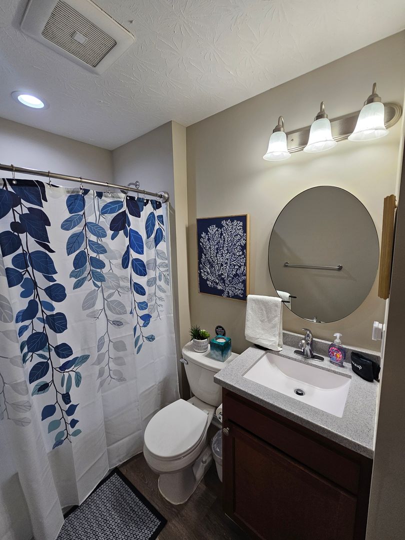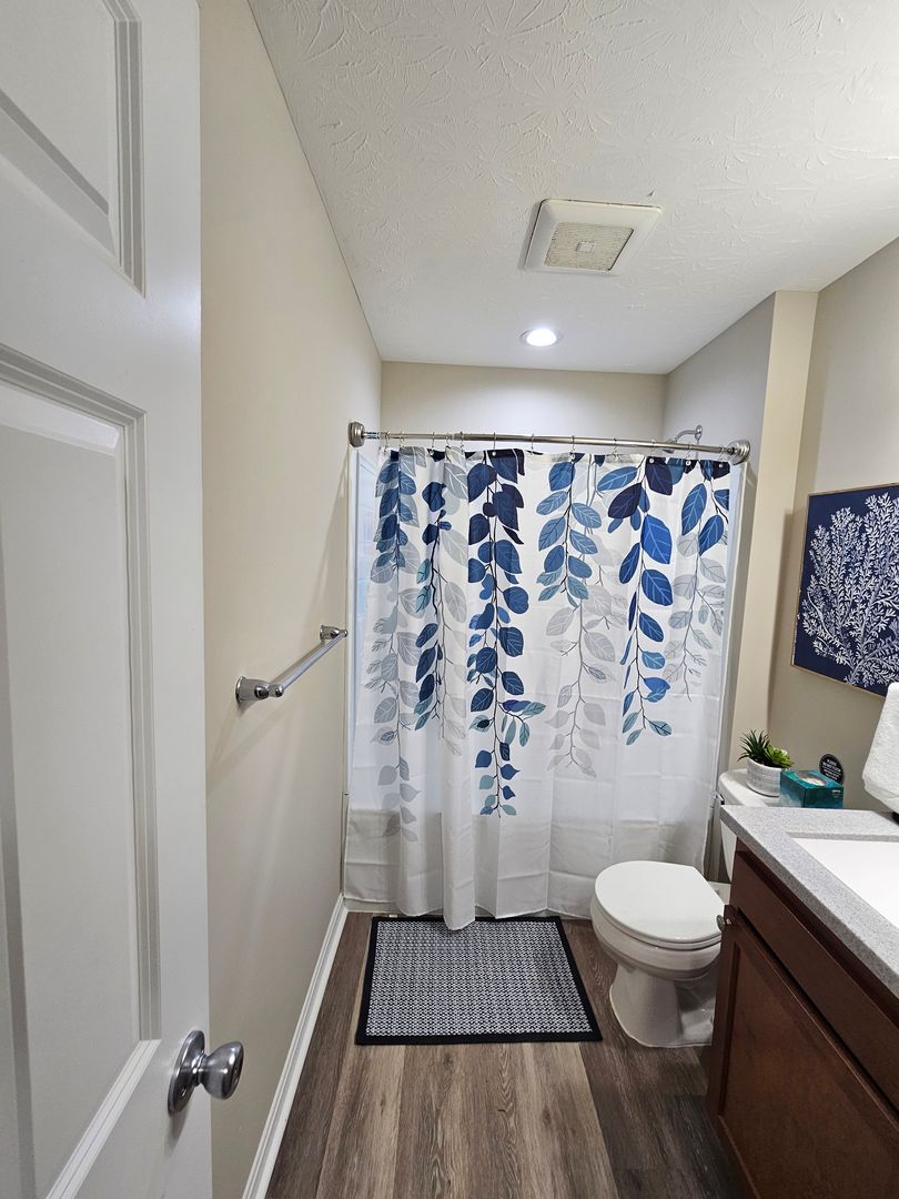 Welcome to this charming single-level home located in the heart of Hamilton, Ohio. This property boasts three spacious bedrooms and two full bathrooms, perfect for comfortable living. The full kitchen is equipped with modern appliances including a dishwasher, oven, microwave, stove, refrigerator, and even a hot water kettle. For coffee lovers, a coffee maker is provided along with complimentary coffee. Wine enthusiasts will appreciate the inclusion of wine glasses. The home also features room darkening shades for a restful sleep and ample clothing storage. For your convenience, a washer and dryer are available on-site. The private backyard and back patio offer a great space for relaxation or entertaining, complete with a BBQ grill. Stay connected with free WiFi and enjoy your favorite shows on the smart TVs. The home also includes a private entrance, free parking on the premises, and allows for long-term stays. For your comfort, the home is equipped with air conditioning, heating, and ceiling fans. Essentials are included for your stay and cleaning is available during your stay. Safety features include a smoke alarm, fire extinguisher, and first aid kit. This home truly offers all the comforts and conveniences for a memorable stay in Hamilton, Ohio.