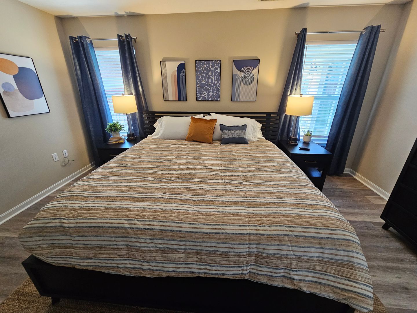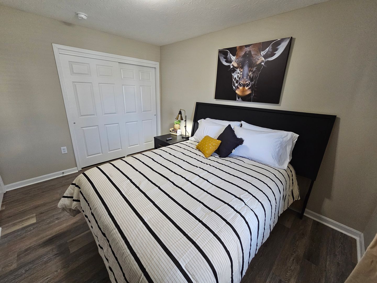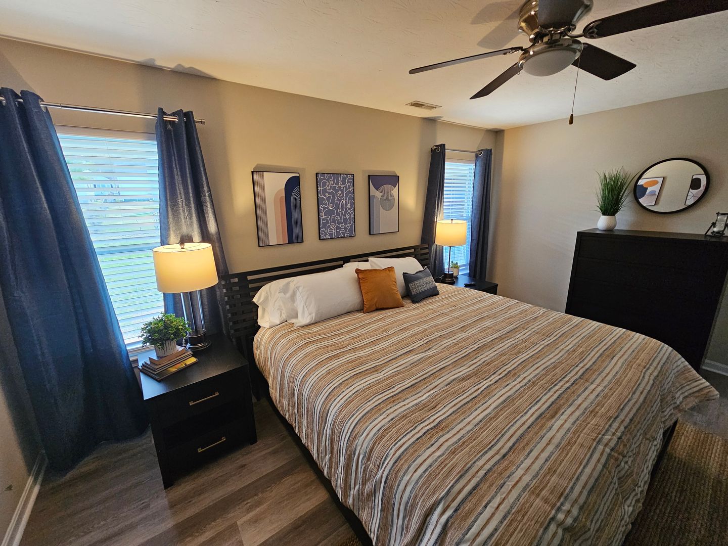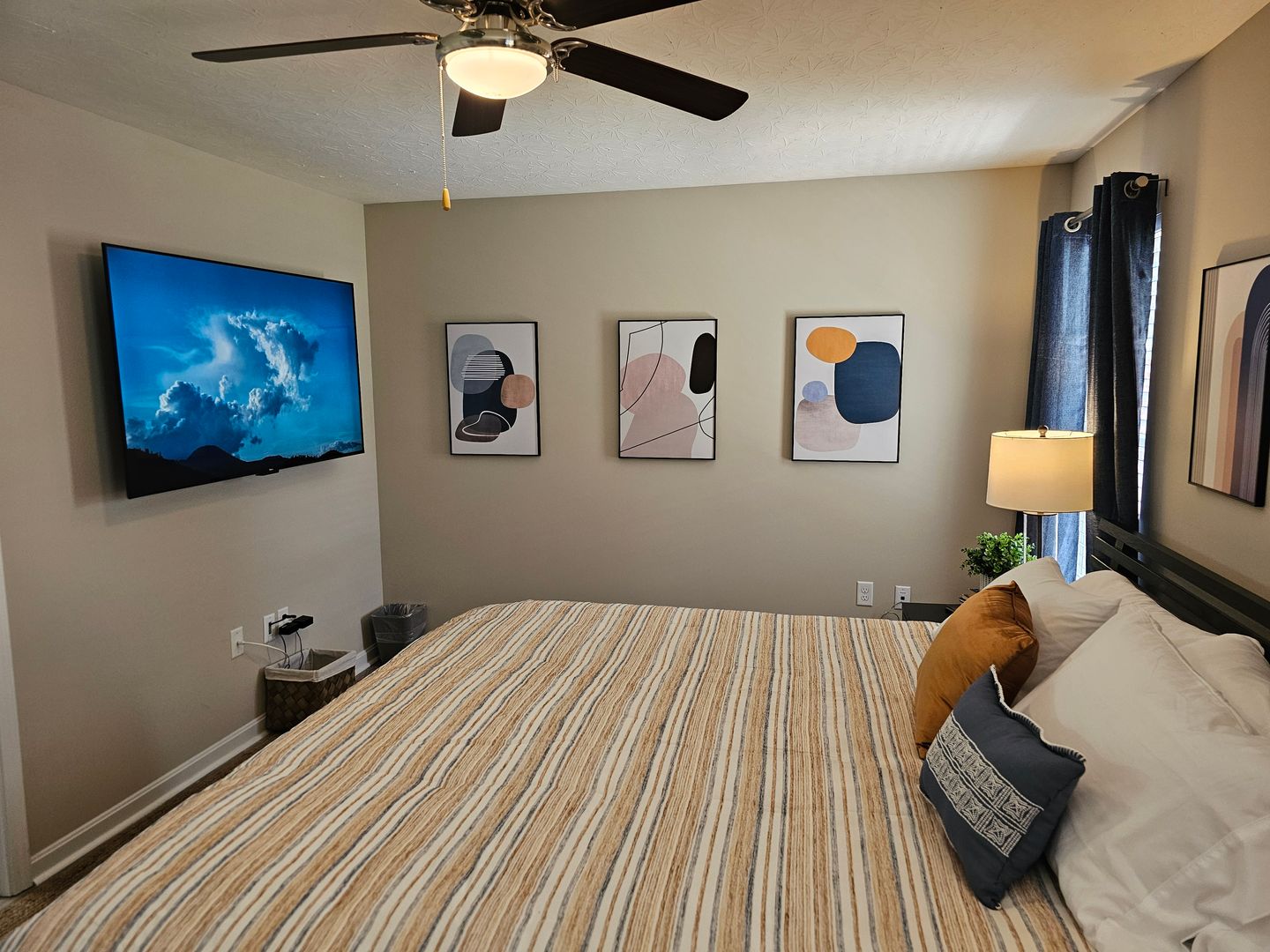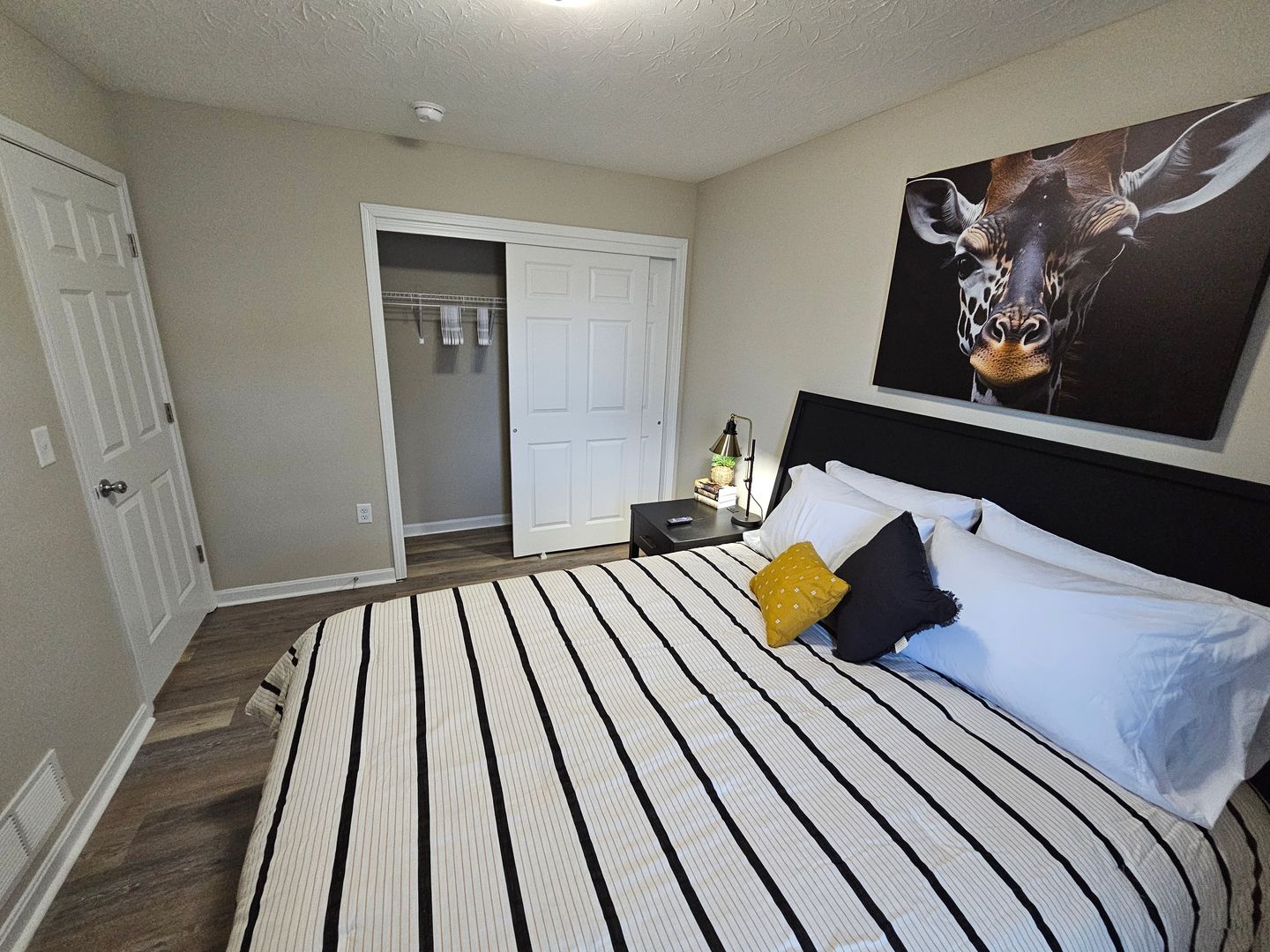 Welcome to this charming single-level home located in the heart of Hamilton, Ohio. This property boasts three spacious bedrooms and two full bathrooms, perfect for comfortable living. The full kitchen is equipped with modern appliances including a dishwasher, oven, microwave, stove, refrigerator, and even a hot water kettle. For coffee lovers, a coffee maker is provided along with complimentary coffee. Wine enthusiasts will appreciate the inclusion of wine glasses. The home also features room darkening shades for a restful sleep and ample clothing storage. For your convenience, a washer and dryer are available on-site. The private backyard and back patio offer a great space for relaxation or entertaining, complete with a BBQ grill. Stay connected with free WiFi and enjoy your favorite shows on the smart TVs. The home also includes a private entrance, free parking on the premises, and allows for long-term stays. For your comfort, the home is equipped with air conditioning, heating, and ceiling fans. Essentials are included for your stay and cleaning is available during your stay. Safety features include a smoke alarm, fire extinguisher, and first aid kit. This home truly offers all the comforts and conveniences for a memorable stay in Hamilton, Ohio.