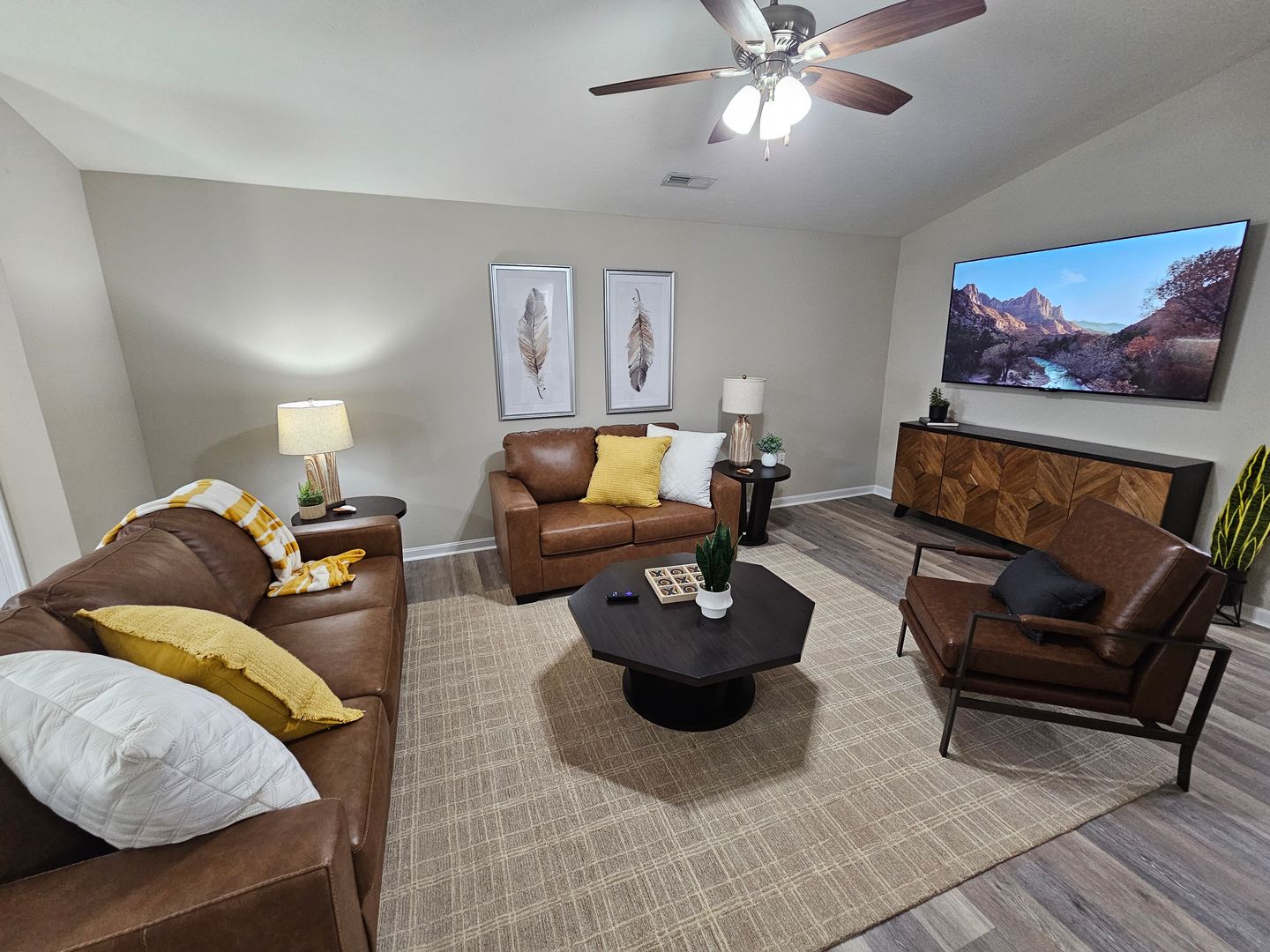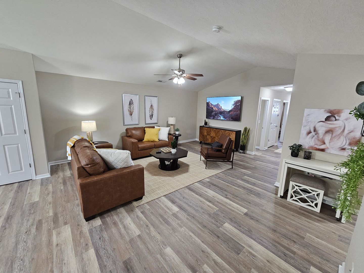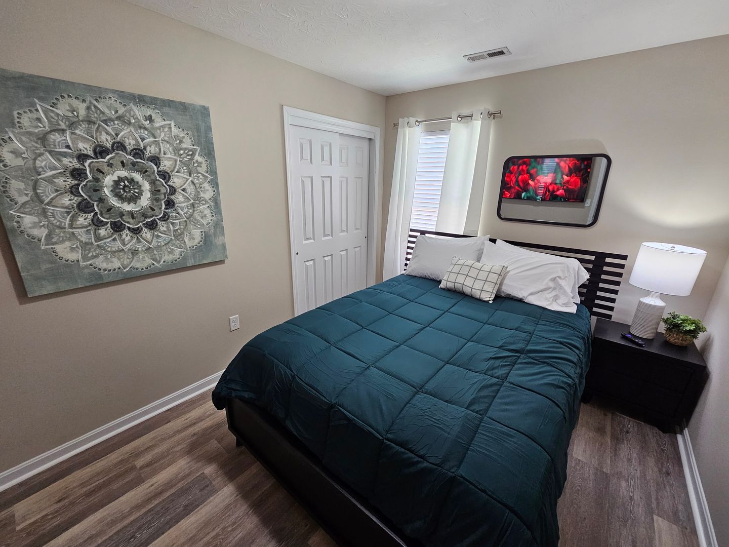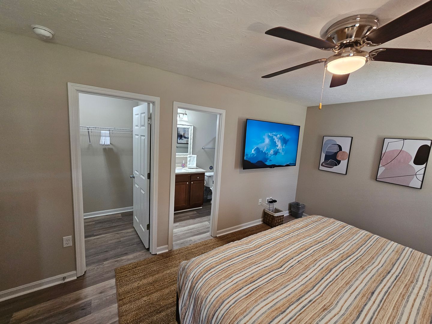 Welcome to this charming single-level home located in the heart of Hamilton, Ohio. This property boasts three spacious bedrooms and two full bathrooms, perfect for comfortable living. The full kitchen is equipped with modern appliances including a dishwasher, oven, microwave, stove, refrigerator, and even a hot water kettle. For coffee lovers, a coffee maker is provided along with complimentary coffee. Wine enthusiasts will appreciate the inclusion of wine glasses. The home also features room darkening shades for a restful sleep and ample clothing storage. For your convenience, a washer and dryer are available on-site. The private backyard and back patio offer a great space for relaxation or entertaining, complete with a BBQ grill. Stay connected with free WiFi and enjoy your favorite shows on the smart TVs. The home also includes a private entrance, free parking on the premises, and allows for long-term stays. For your comfort, the home is equipped with air conditioning, heating, and ceiling fans. Essentials are included for your stay and cleaning is available during your stay. Safety features include a smoke alarm, fire extinguisher, and first aid kit. This home truly offers all the comforts and conveniences for a memorable stay in Hamilton, Ohio.