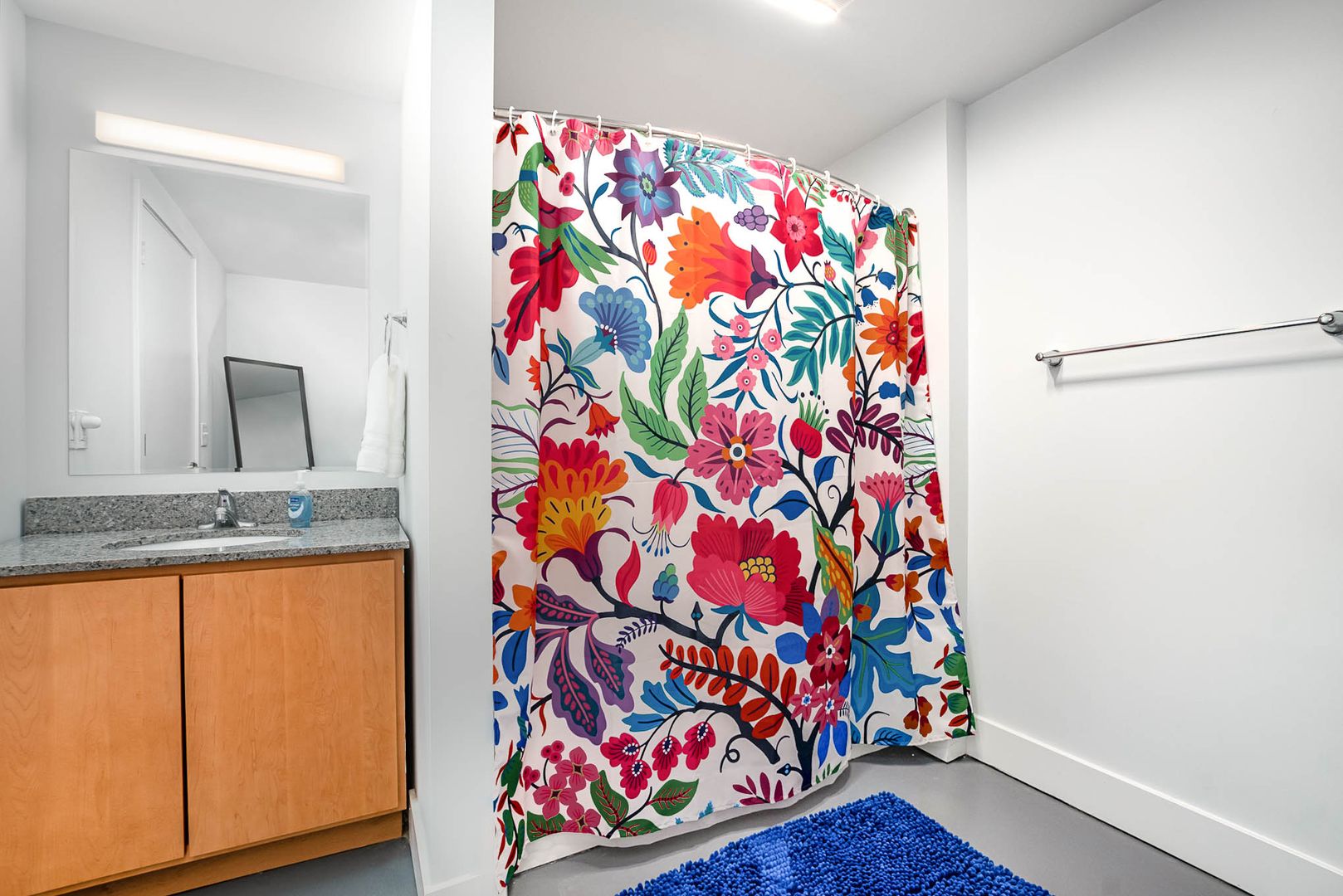 The kitchen and living room are open concept. You have plenty of space and windows to make this room feel very large. Comfortable couch, ROKU TV, and a dedicated work space make this perfect for anyone!