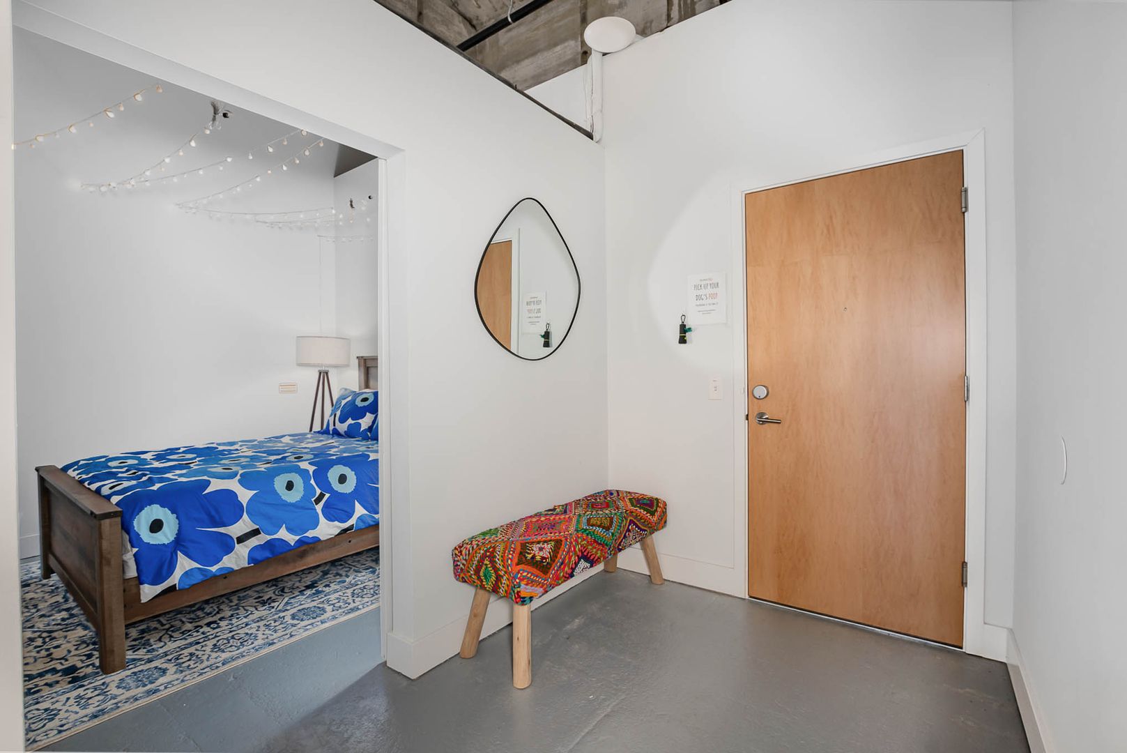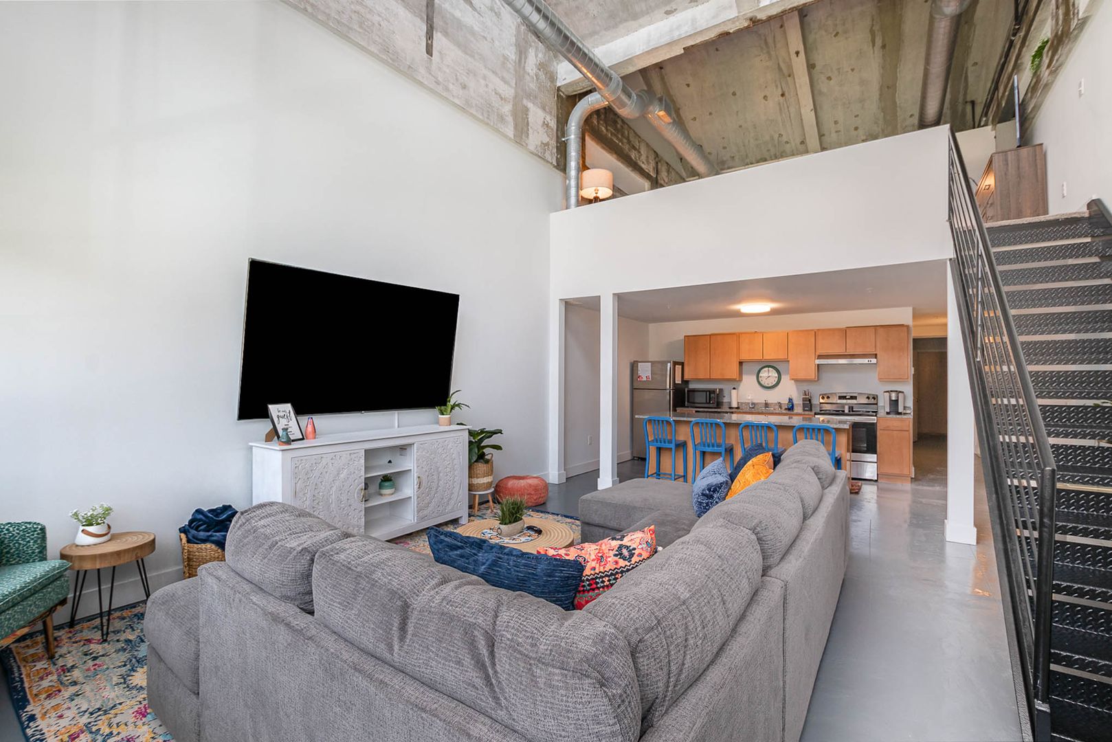 This is a loft and has an industrial feel. There are many things to do nearby. Great place for a stay-vacation.