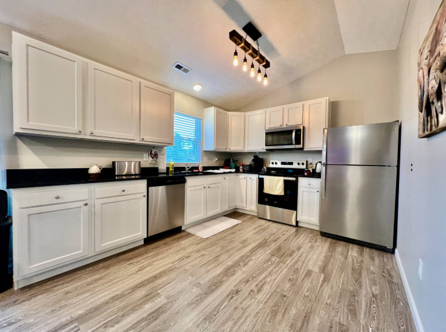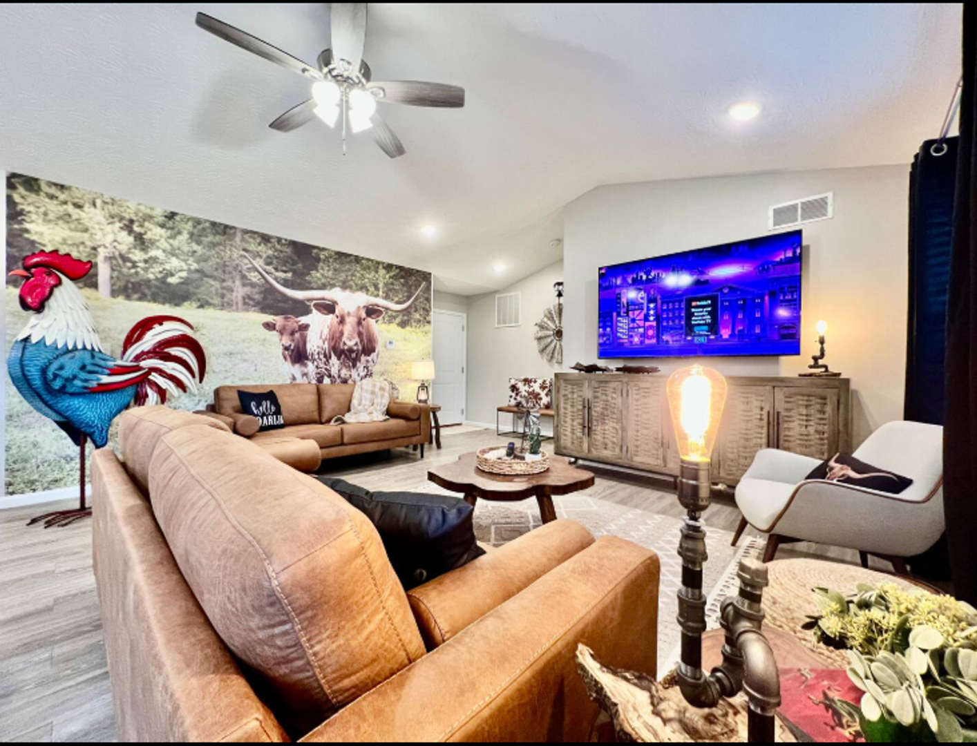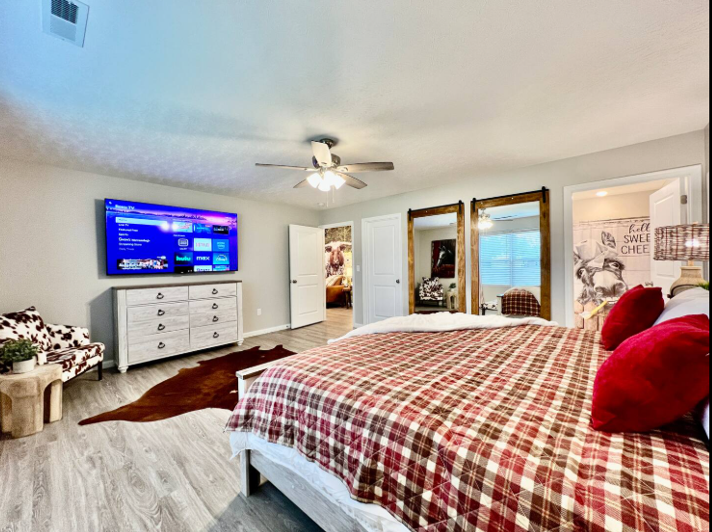 A blend of comfort, style, and convenience greets you as soon as you enter our newly built ranch home. While decorating this inviting retreat, we have worked hard to create a home away from home feeling for our guests. The open-concept floor plan in the living space allows room for many guests. Everyone in your group will have room to mingle and relax.