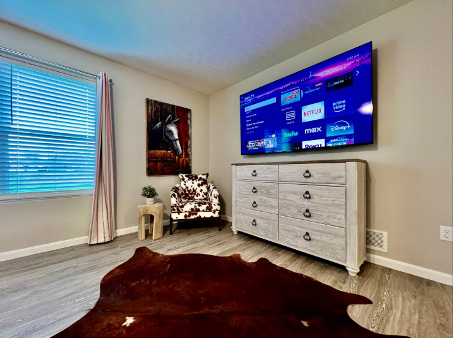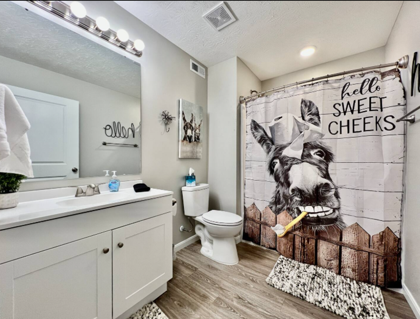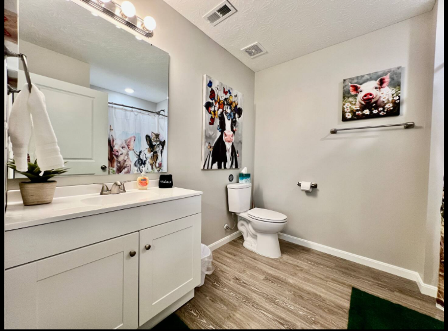 A blend of comfort, style, and convenience greets you as soon as you enter our newly built ranch home. While decorating this inviting retreat, we have worked hard to create a home away from home feeling for our guests. The open-concept floor plan in the living space allows room for many guests. Everyone in your group will have room to mingle and relax.