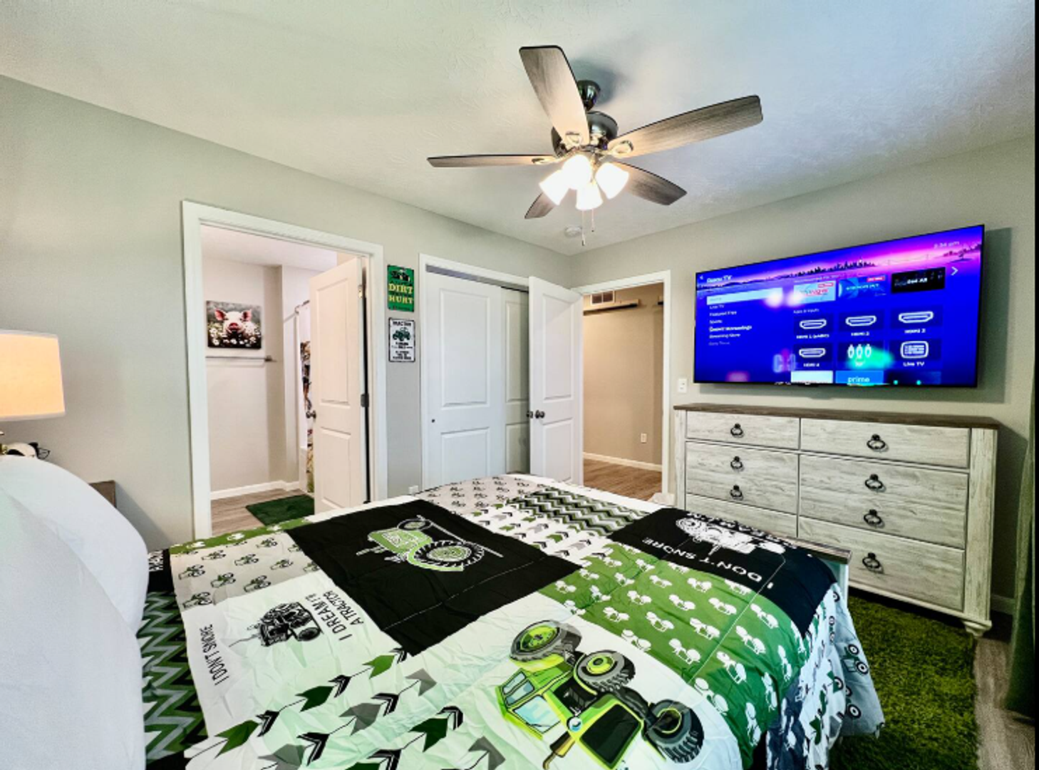 Whether it is work or play that brings you to Trenton, Ohio; this brand-new home has everything you need. It's quiet, comfortable, and not too far from the city of Hamilton. For folks that like a little slower pace where they reside this home is just perfect. It has a large yard and a relaxing covered porch. There's a 75 Inch flat screen in the main room and each bedroom has its own 55-inch flatscreen smart TV. This home is meticulously maintained and we know you will love it! Come see us!