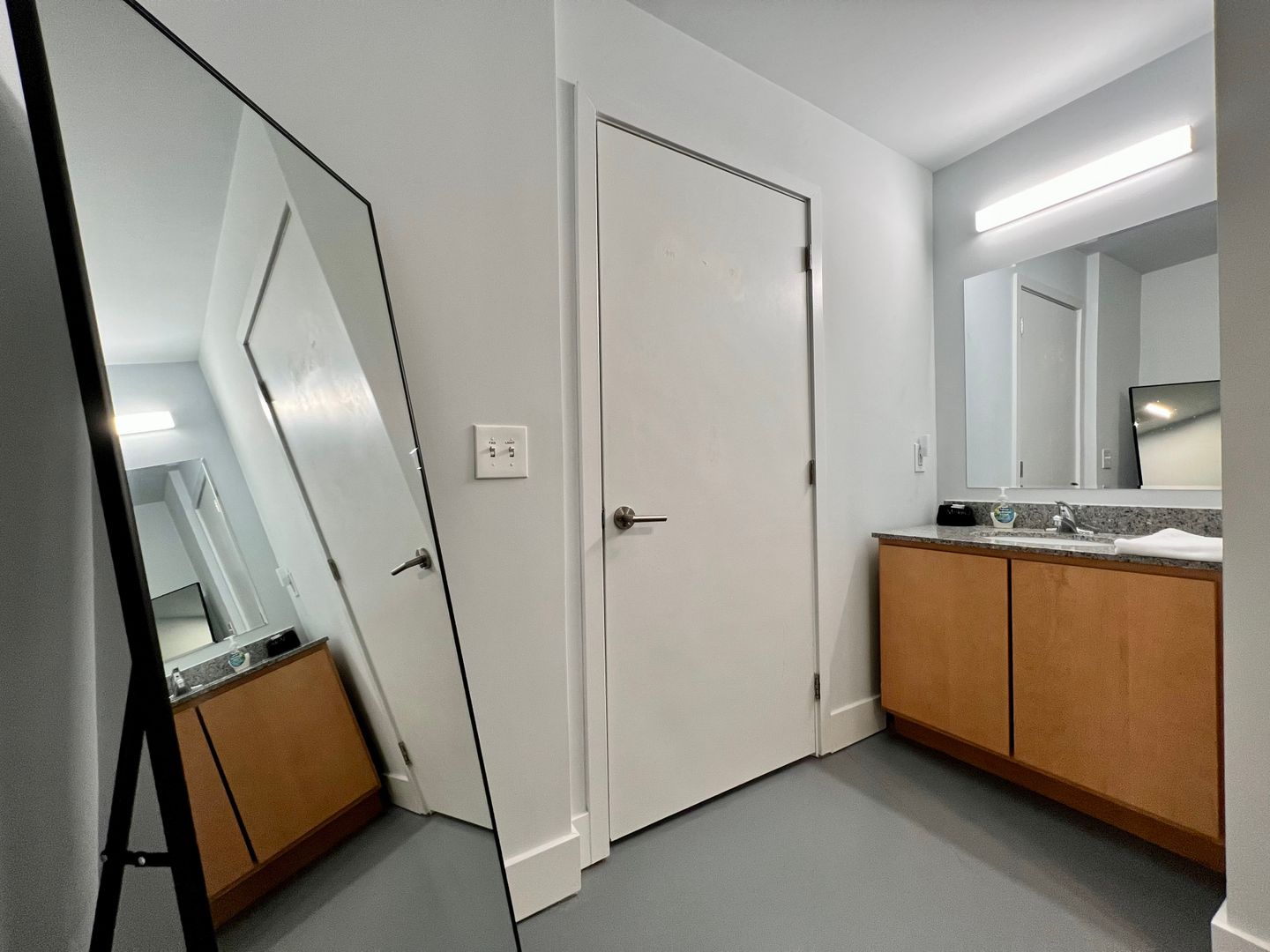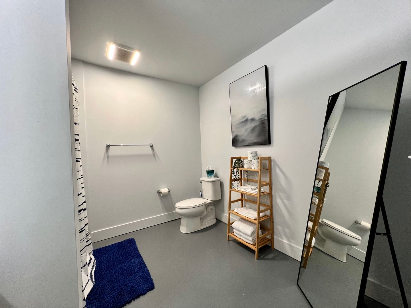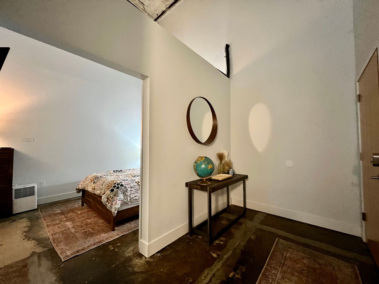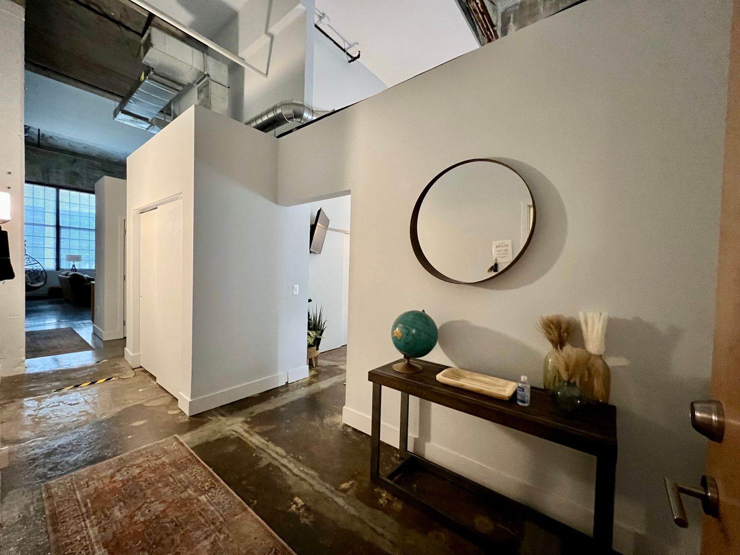 This gorgeous one-bedroom loft boasts an industrial feel complete with exposed duct work, large picturesque windows, and concrete flooring throughout. There is a bit of history and character everywhere you look.