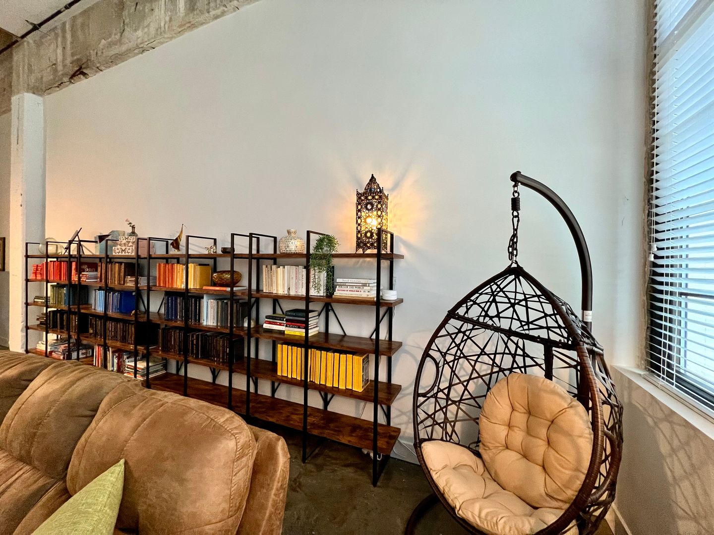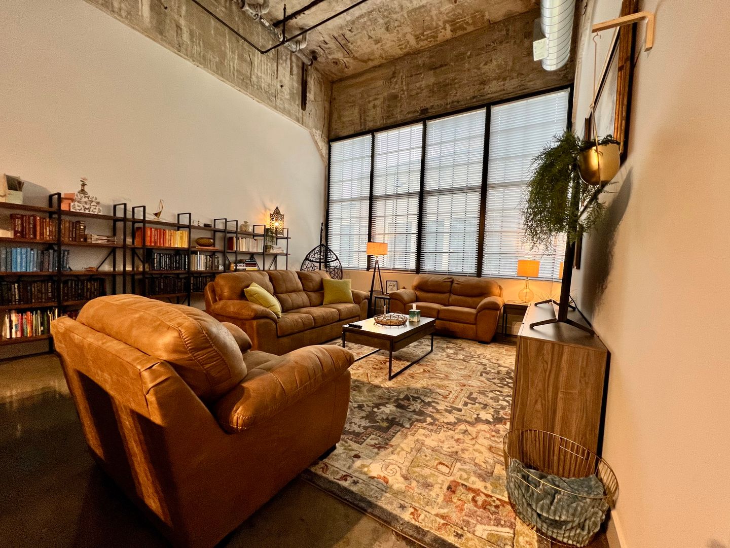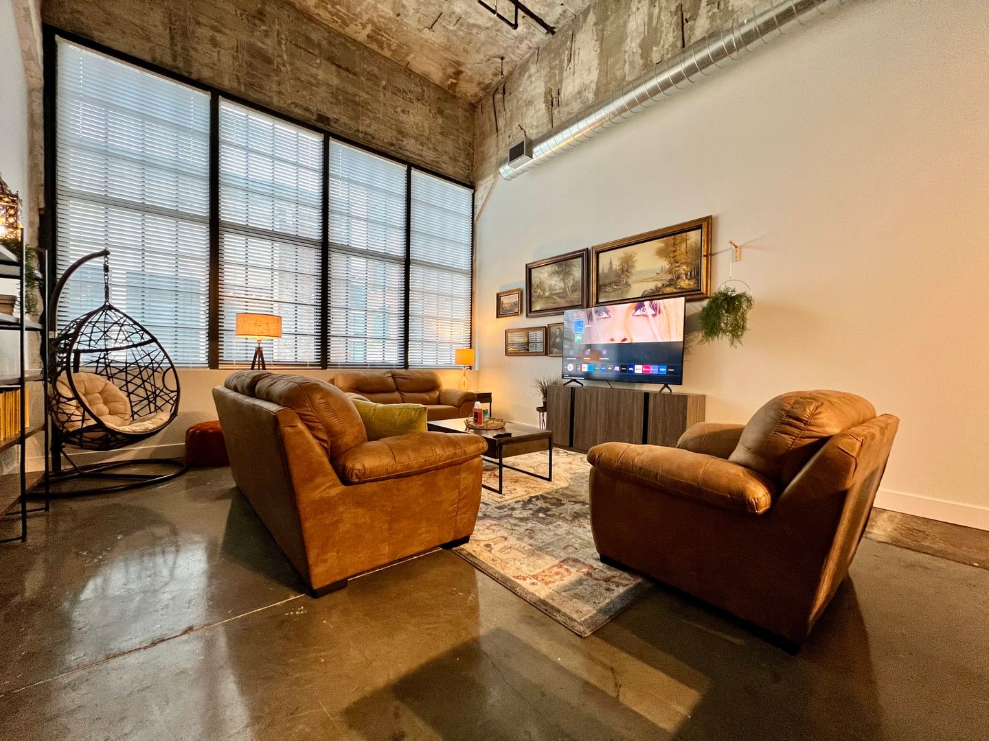 The inside of your loft features an open-concept floor plan with a massive 13-foot ceiling. Enjoy chatting with your guests from anywhere in the main living area.