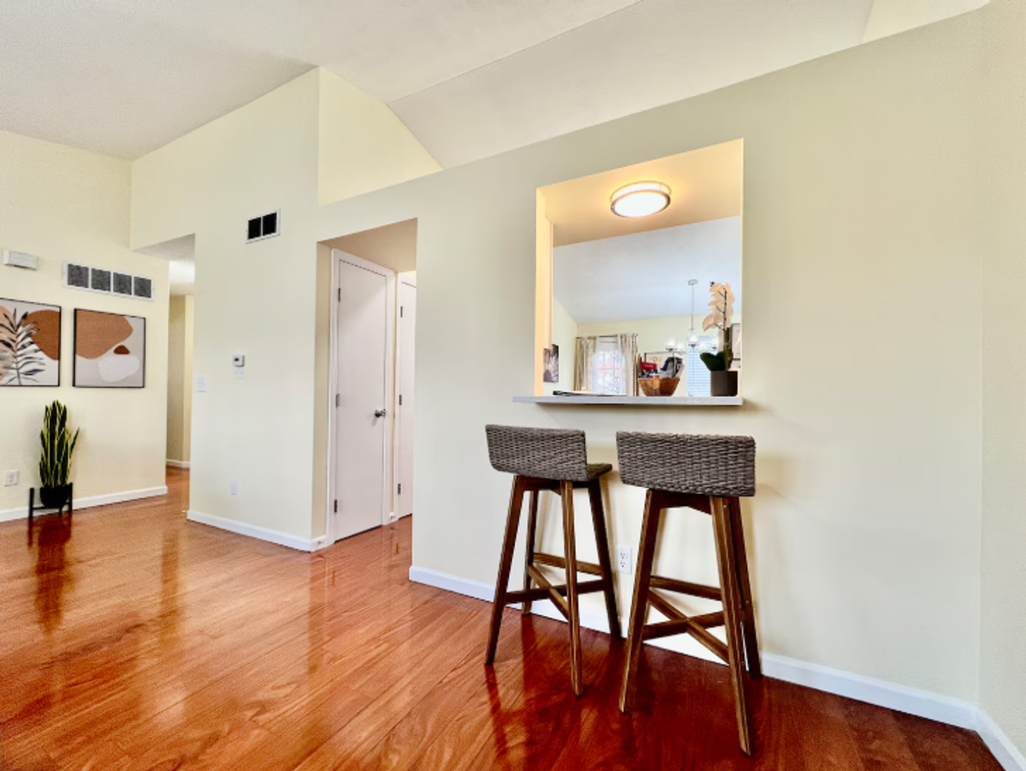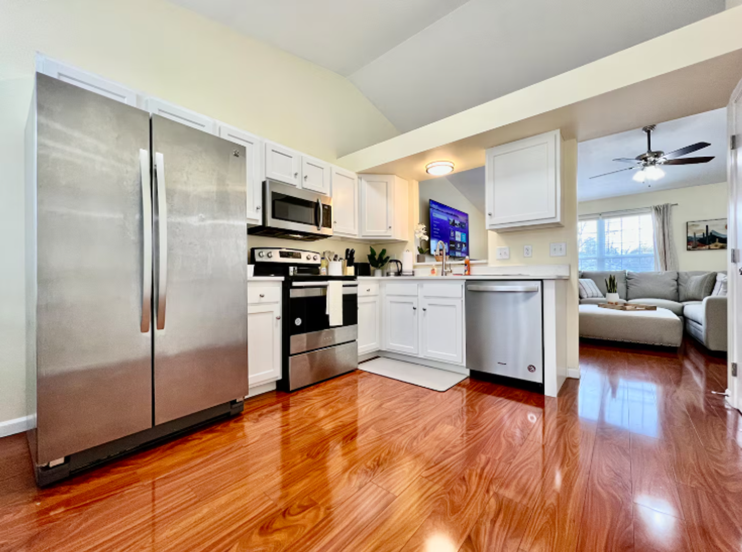 The living room is a part of the contemporary open floor plan. See what the chef is up to, help them set the table, or unwind on the cozy sofa with a good book.