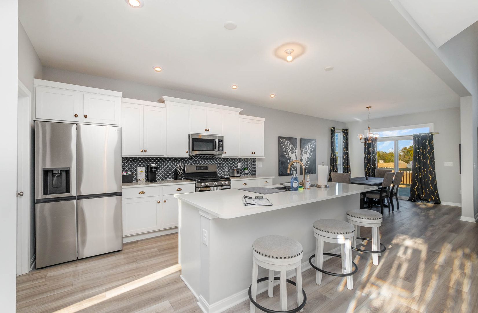 The living room is a part of the contemporary open floor plan. See what the chef is up to, help them set the table, or unwind on the sofa with a good book.