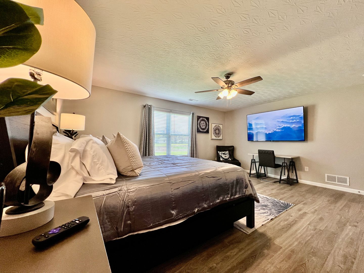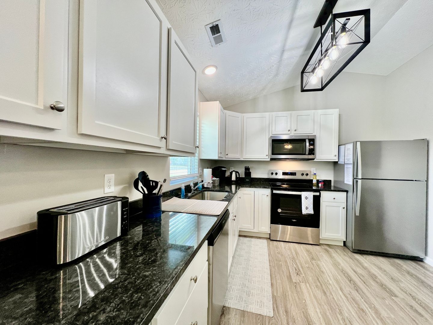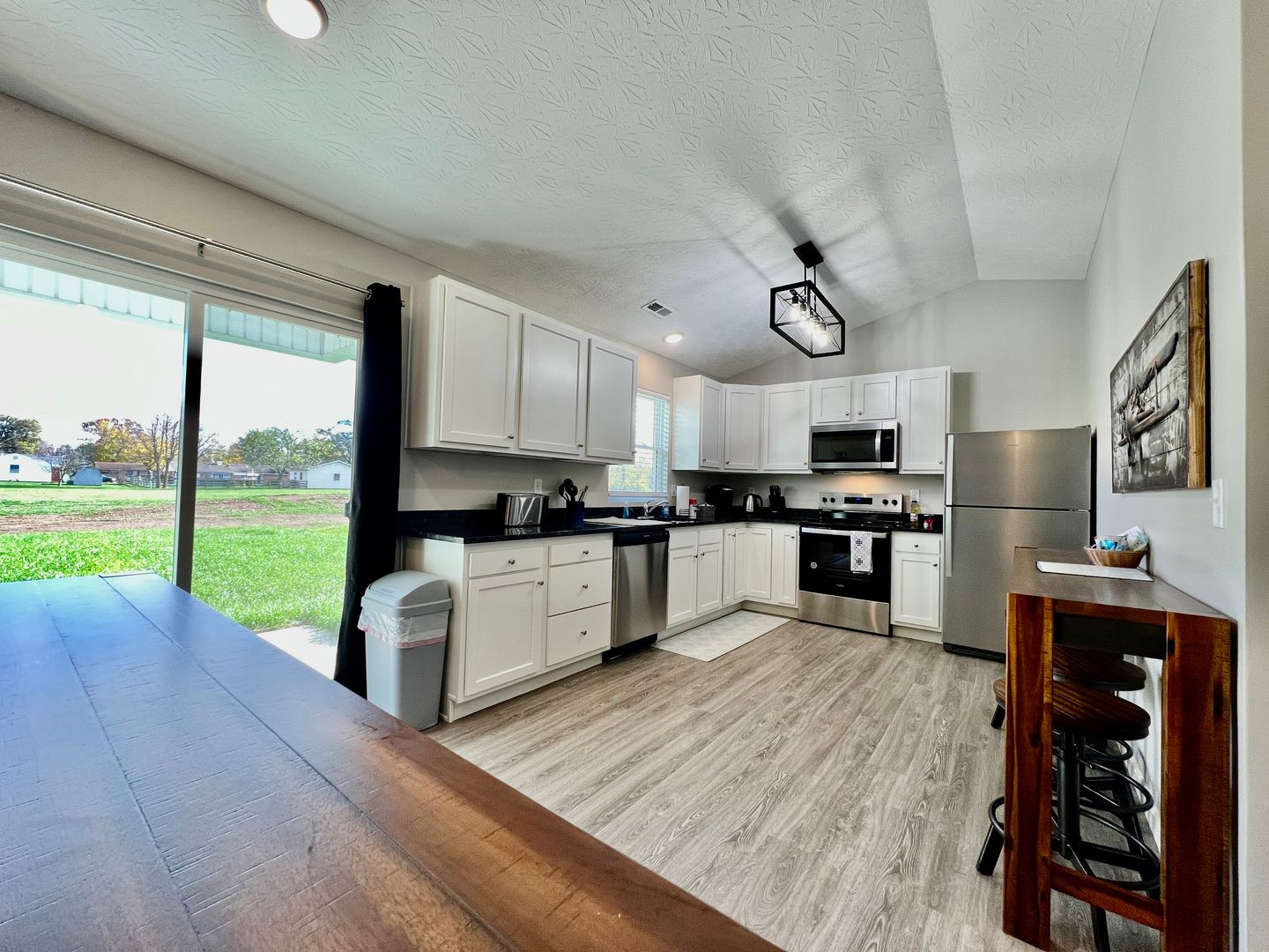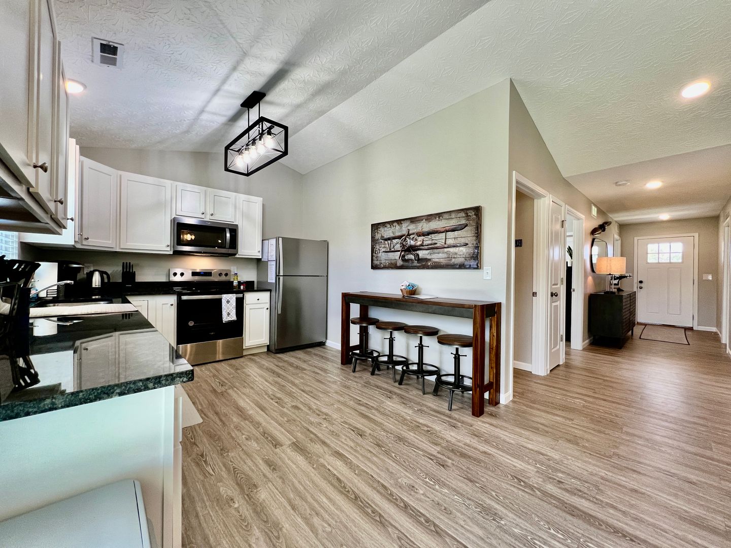 A blend of comfort, style, and convenience greets you as soon as you enter our newly built ranch home. While decorating this inviting retreat, we have worked hard to create a home away from home feeling for our guests. The open-concept floor plan in the living space allows room for many guests. Everyone in your group will have room to mingle and relax.
