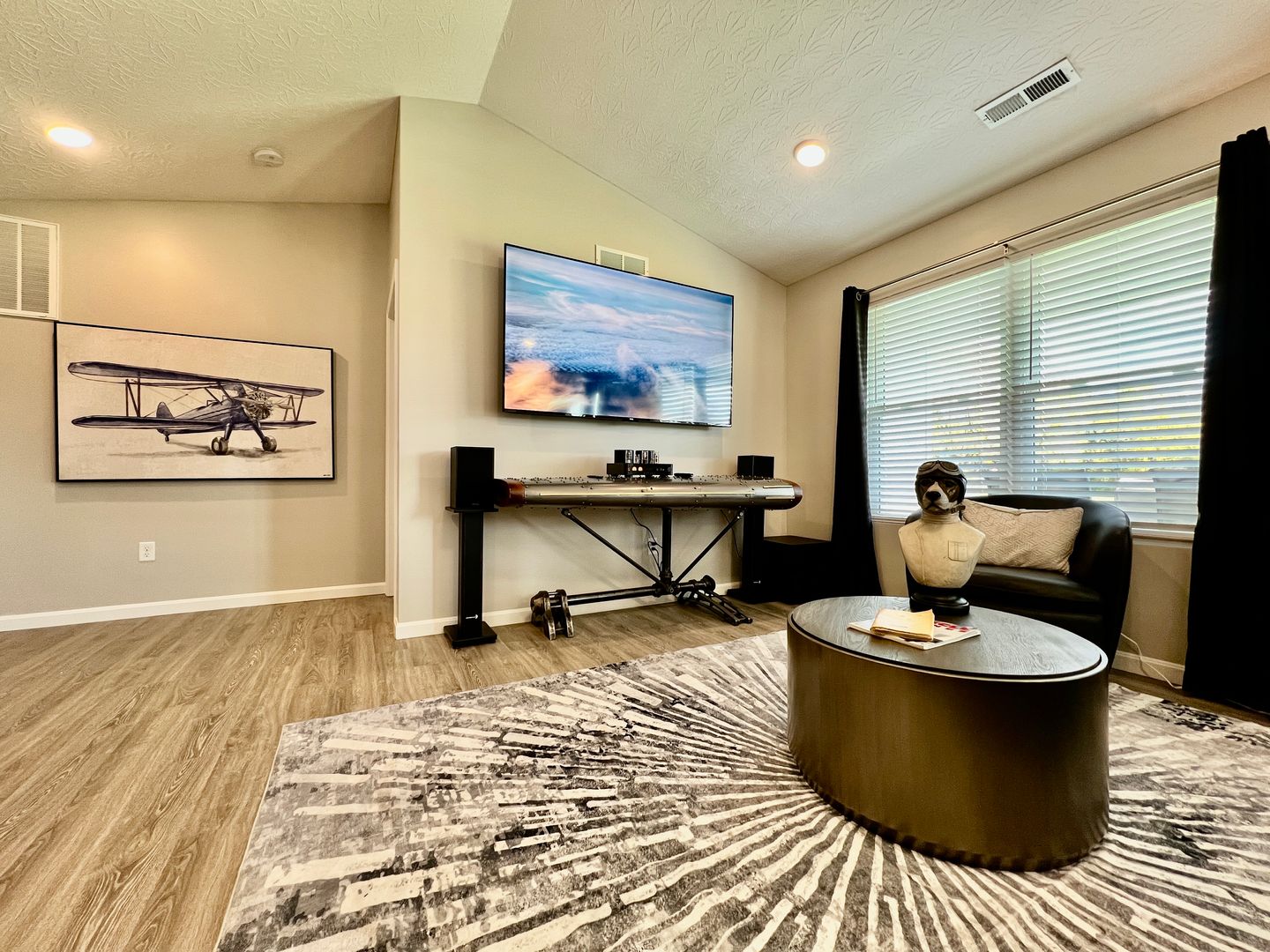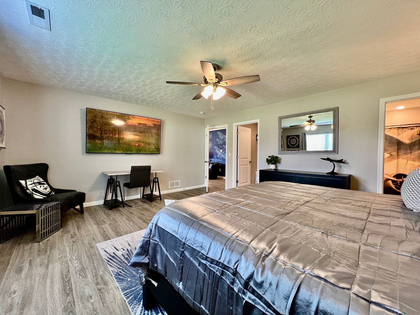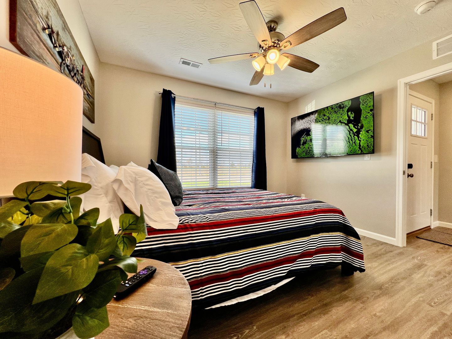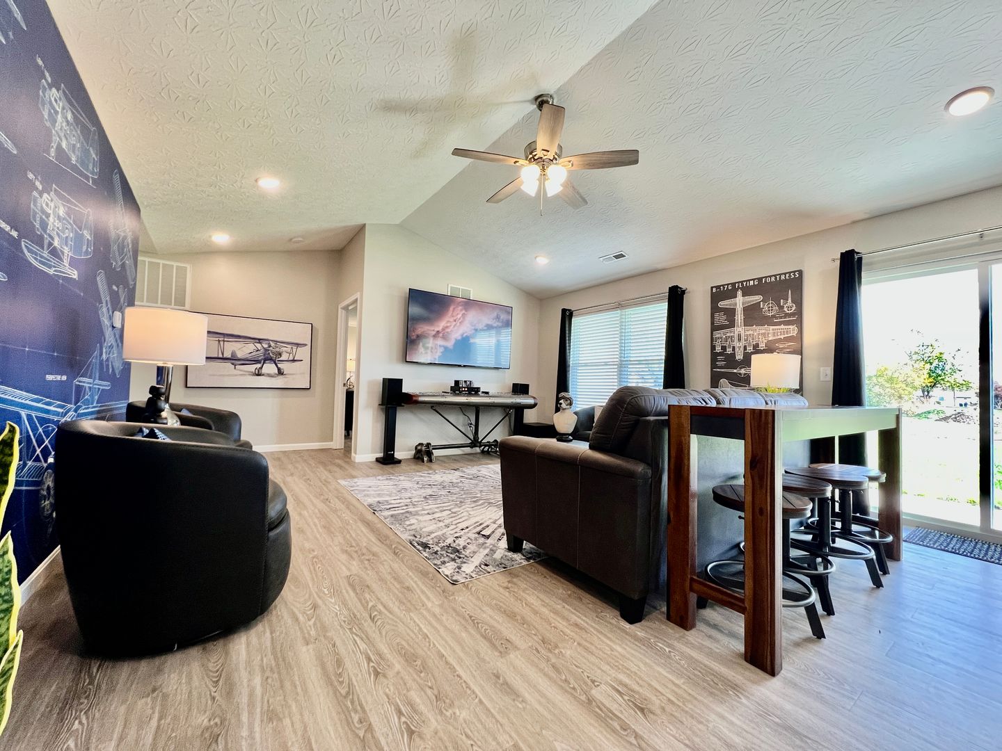 A blend of comfort, style, and convenience greets you as soon as you enter our newly built ranch home. While decorating this inviting retreat, we have worked hard to create a home away from home feeling for our guests. The open-concept floor plan in the living space allows room for many guests. Everyone in your group will have room to mingle and relax.