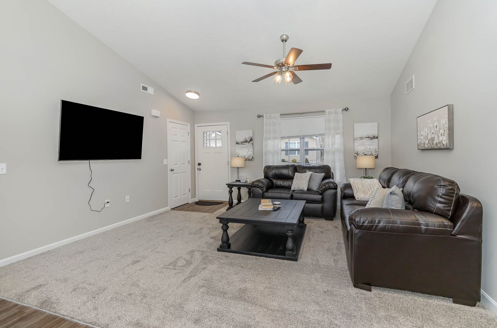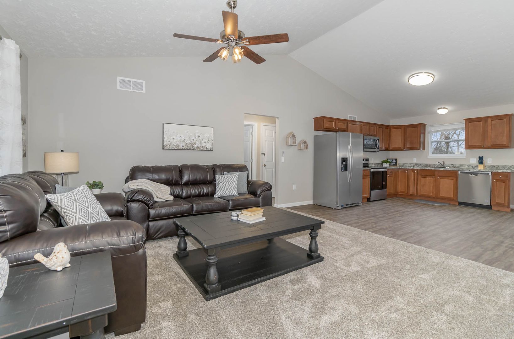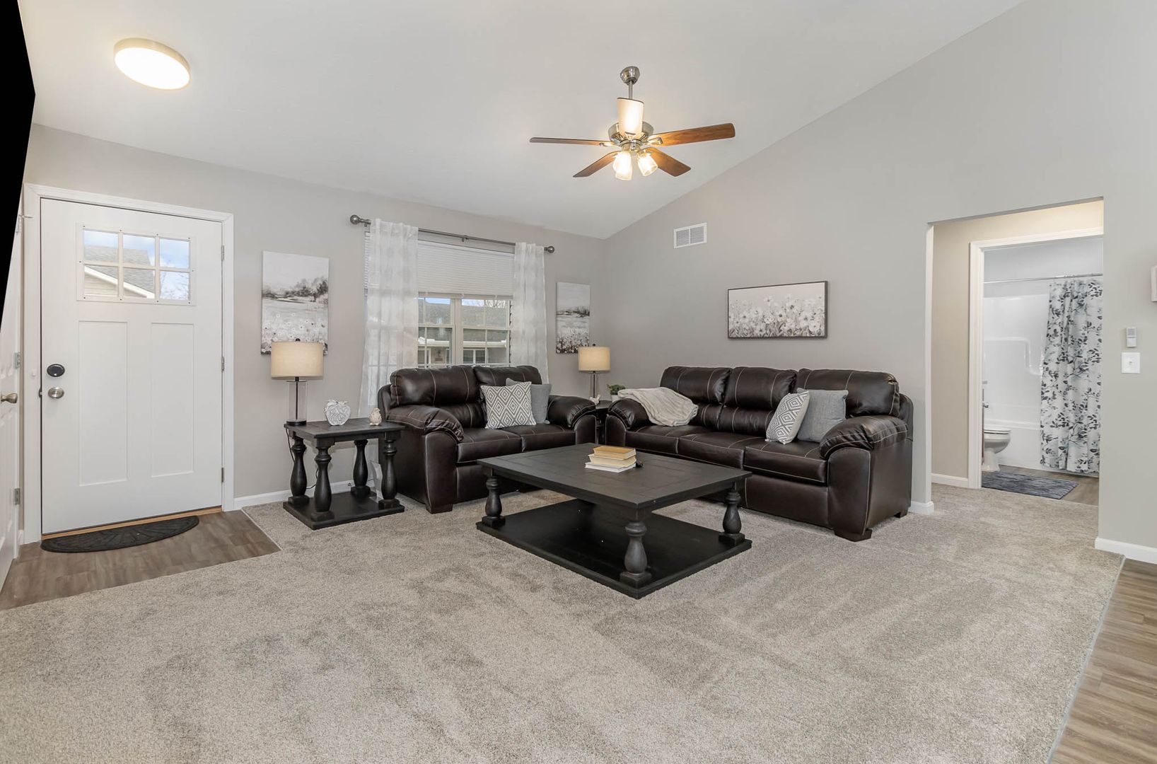 The living room is a part of the contemporary open floor plan. See what the chef is up to, help them set the table, or unwind on the cozy sofa with a good book.