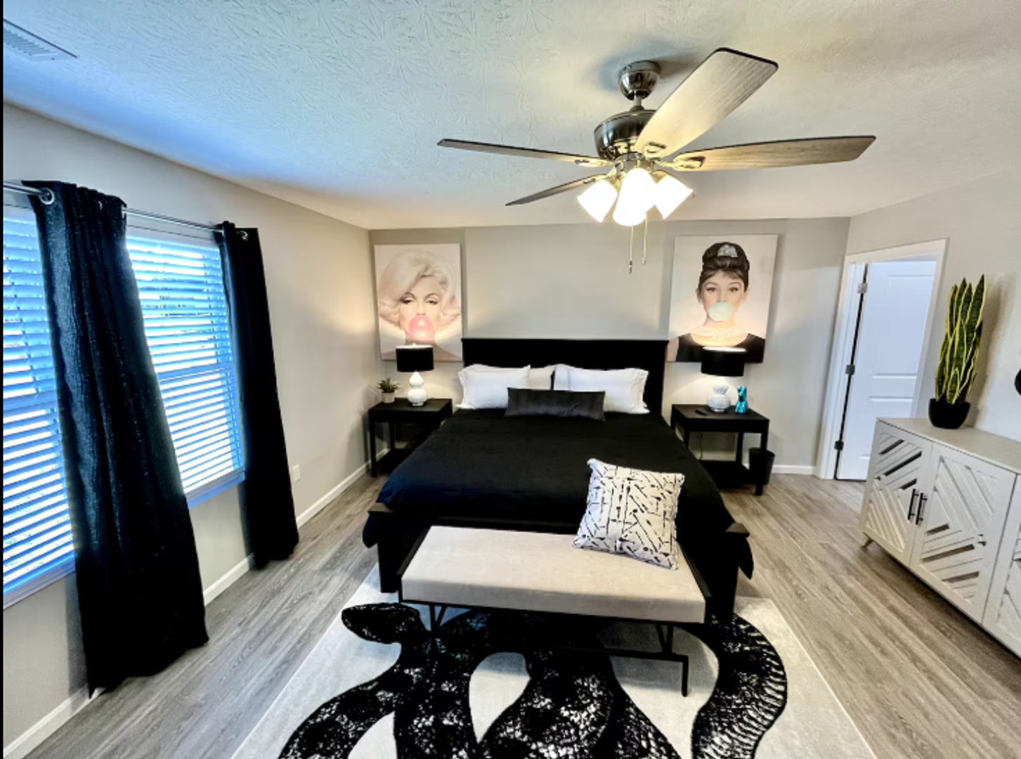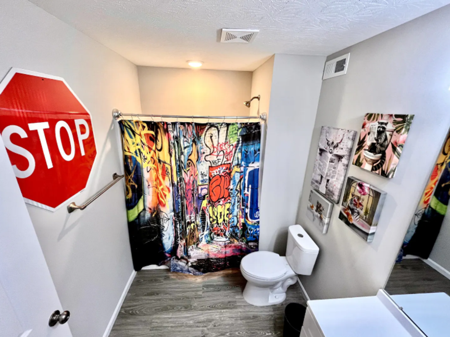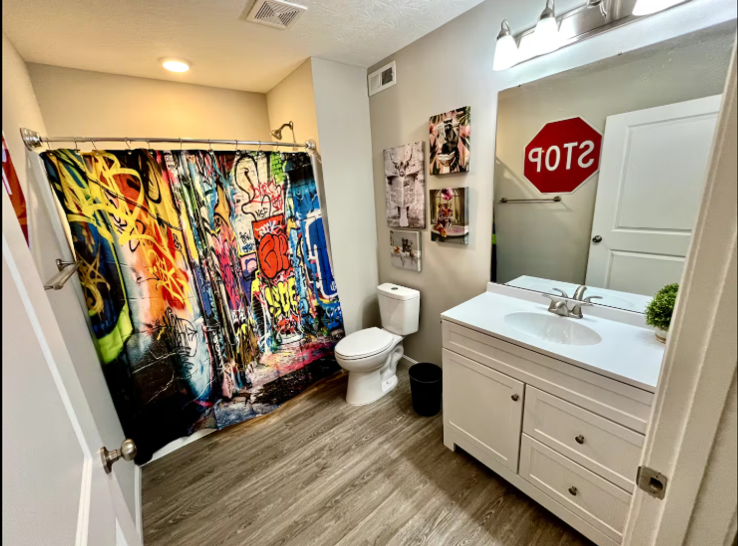 This house has a style all its own - with vibrant colors and truly unique feel, whether it is work or play that brings you to Trenton, this brand-new home has everything you need. It's quiet, comfortable, and not too far from the city of Hamilton. It has a hot tub, 75 Inch flat screen in the main room and each bedroom has its own 55-inch flatscreen smart TV. This home is meticulously maintained and we know you will love it! Come see us!