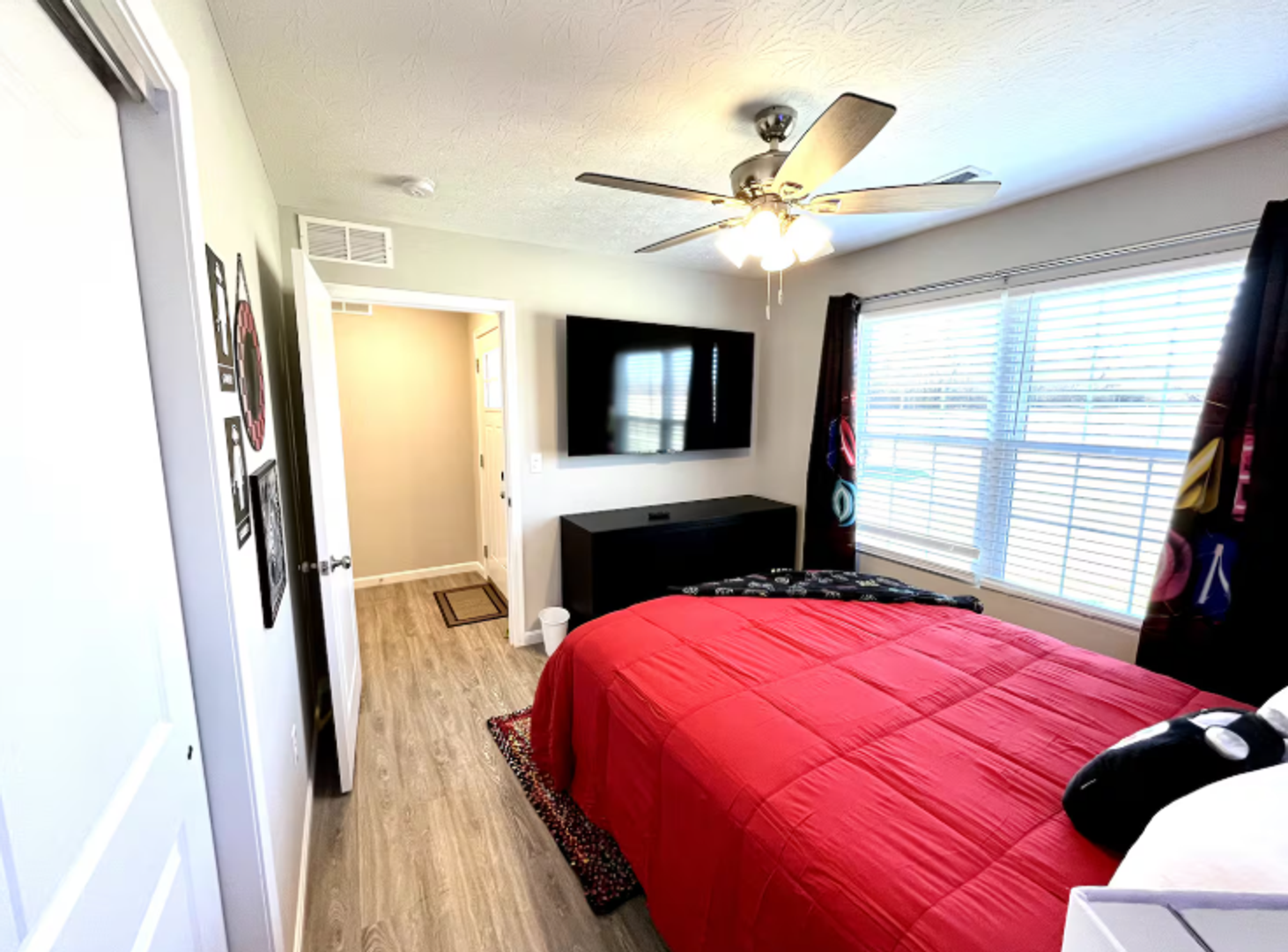 A blend of comfort, style, and convenience greets you as soon as you enter our newly built ranch home. While decorating this inviting retreat, we have worked hard to create a home away from home feeling for our guests. The open-concept floor plan in the living space allows room for many guests. Everyone in your group will have room to mingle and relax.